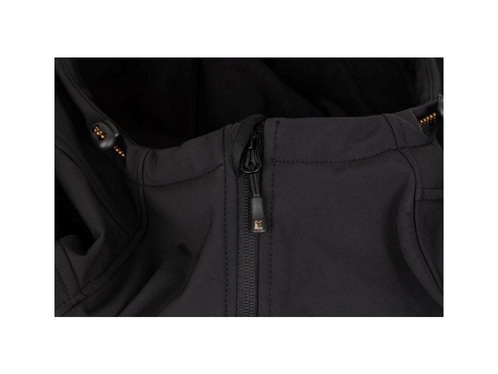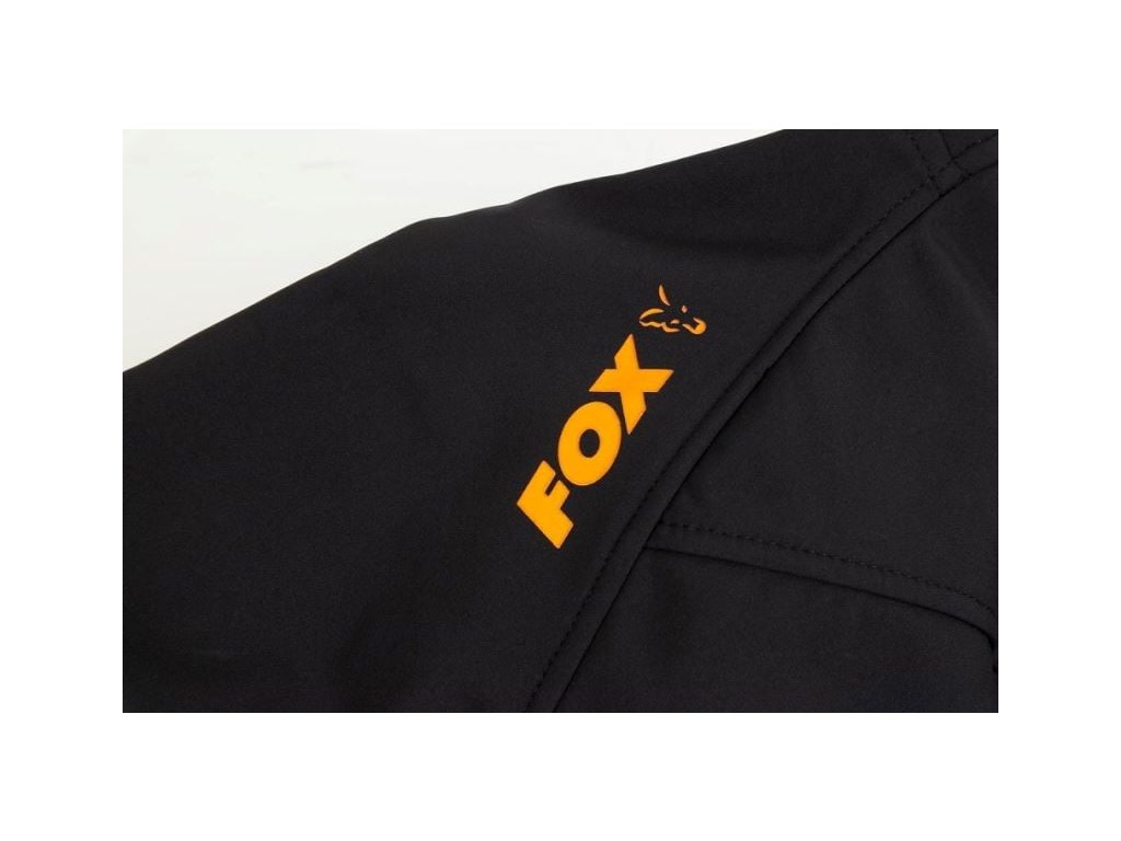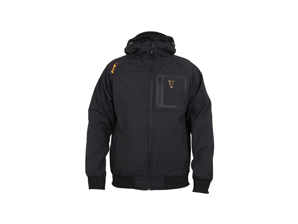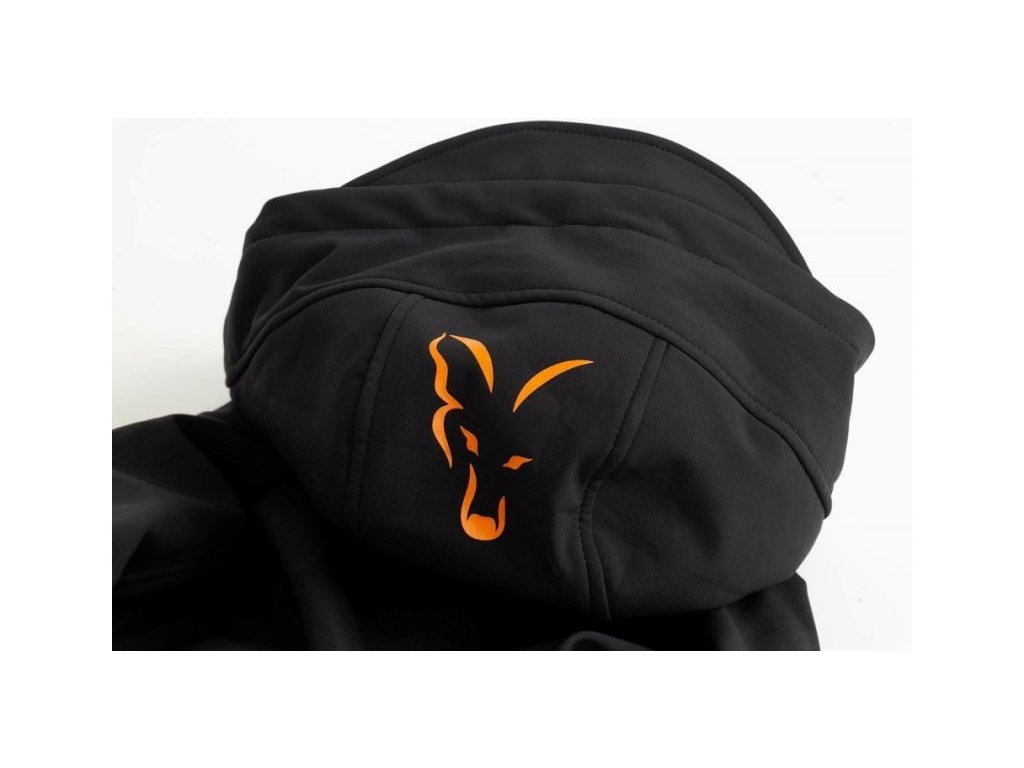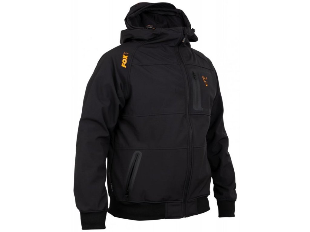 Fox collection Black / Orange Shell hoodie - XXL : Softšelová bunda FOX Collection Black & Orange Shell Hoodie.