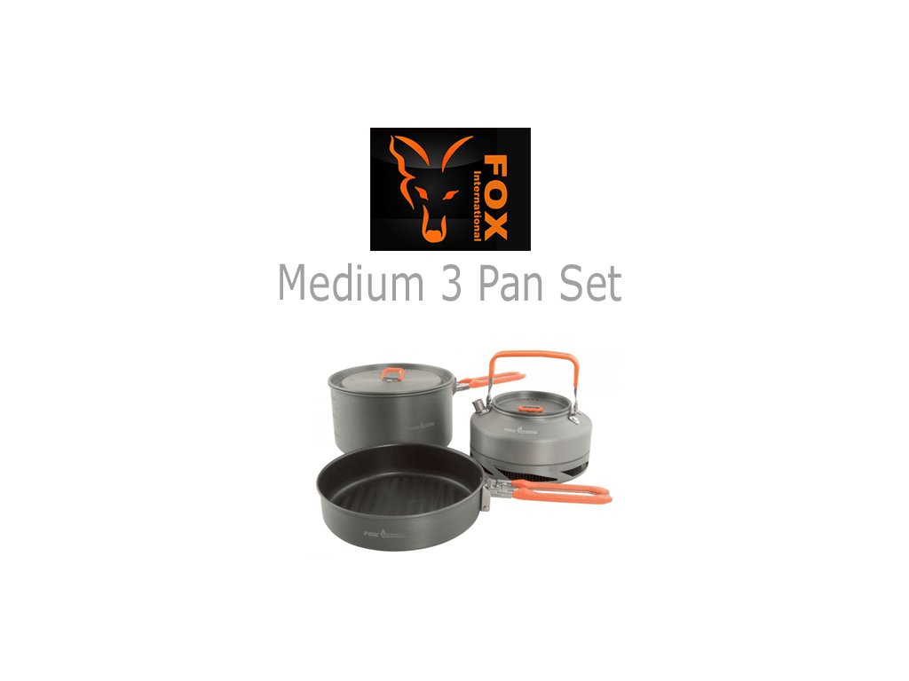 Fox Coockware Mediu 3pc set - Ideálna súprava pre varenie v prírode. Vhodná pre rybárov a na výlety pod stan. Súprava obsahuje panvicu na vyprážanie, stredný hrniec a kanvičku na vodu s objemom 0,9 l. Je vyrobená z kvalitných materiálov a je prispôsobená vonkajším podmienkam. Všetky kusy riadu sa dajú zložiť do seba a ich transportný rozmer je 15 × 20 cm.