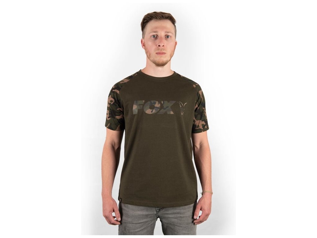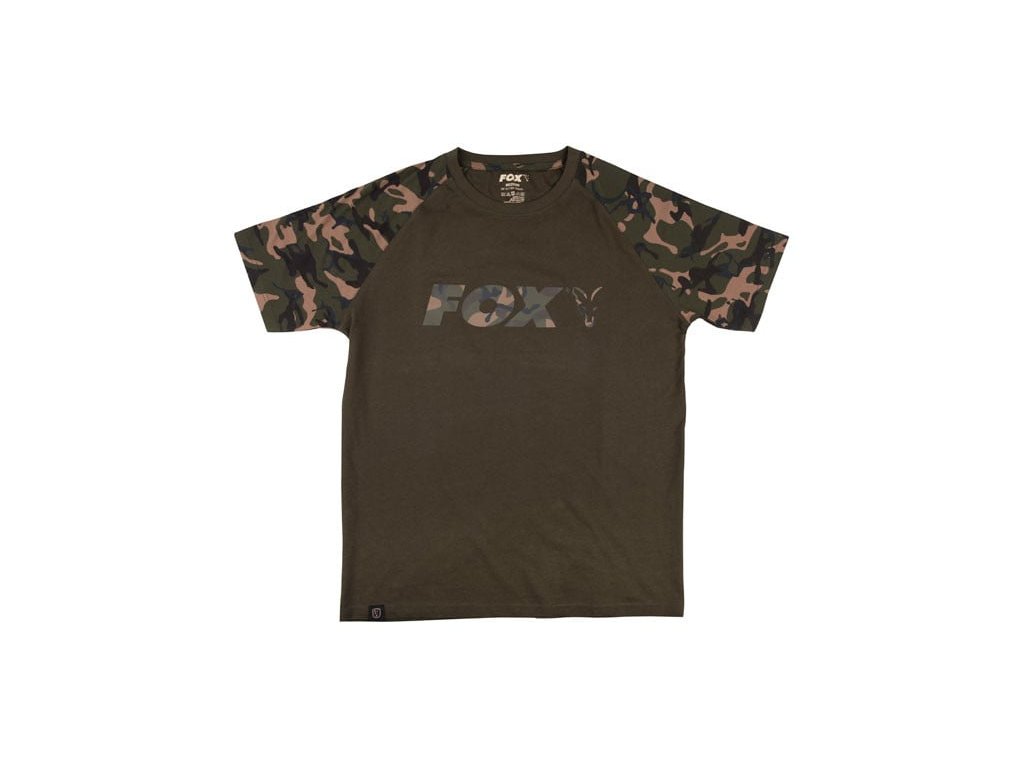 Fox Khaki Raglan Camo print T Vel. M - Je tričko v štýle Raglan má telo vo farbe Khaki, Fox Camo rukávy.