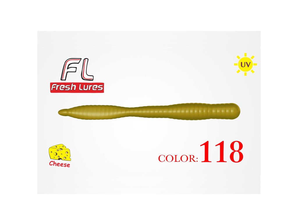 Fresh Lures FlatWorm 3,1" 8cm 1,65gr #118 Prirodná Zelená - Gumená nástraha Fresh Lures Flat Worm je špeciálne vyvinutá na lov pstruhov tzv. na Trout Area.Silikónové nástrahy Flat Worm sú nové originálne červy z rodiny Fresh Lures. Ťažká forma a špeciálna plasticita tela nástrahy spolu so silikónovým zložením vyvinutým špeciálne na lov pstruhov vytvárajú aktívnu a atraktívnu nástrahu. Vyrába sa v 15 farebných prevedeniach. Neoddeliteľná súčasť vášho pstruhového arzenálu. Špeciálne aromatizovaná nástraha – výrazná vôňa syra, ktorá láka pstruhov už zďaleka.