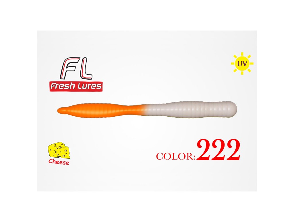 Fresh Lures FlatWorm 3,1" 8cm 1,65gr #222 Bielo Oranžová - Gumená nástraha Fresh Lures Flat Worm je špeciálne vyvinutá na lov pstruhov tzv. na Trout Area.Silikónové nástrahy Flat Worm sú nové originálne červy z rodiny Fresh Lures. Ťažká forma a špeciálna plasticita tela nástrahy spolu so silikónovým zložením vyvinutým špeciálne na lov pstruhov vytvárajú aktívnu a atraktívnu nástrahu. Vyrába sa v 15 farebných prevedeniach. Neoddeliteľná súčasť vášho pstruhového arzenálu. Špeciálne aromatizovaná nástraha – výrazná vôňa syra, ktorá láka pstruhov už zďaleka.