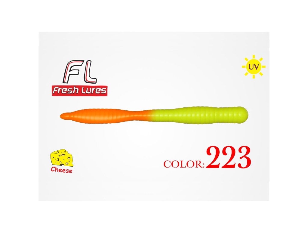 Fresh Lures FlatWorm 3,1" 8cm 1,65gr #223 Žlto Oranžová - Gumená nástraha Fresh Lures Flat Worm je špeciálne vyvinutá na lov pstruhov tzv. na Trout Area.Silikónové nástrahy Flat Worm sú nové originálne červy z rodiny Fresh Lures. Ťažká forma a špeciálna plasticita tela nástrahy spolu so silikónovým zložením vyvinutým špeciálne na lov pstruhov vytvárajú aktívnu a atraktívnu nástrahu. Vyrába sa v 15 farebných prevedeniach. Neoddeliteľná súčasť vášho pstruhového arzenálu. Špeciálne aromatizovaná nástraha – výrazná vôňa syra, ktorá láka pstruhov už zďaleka.