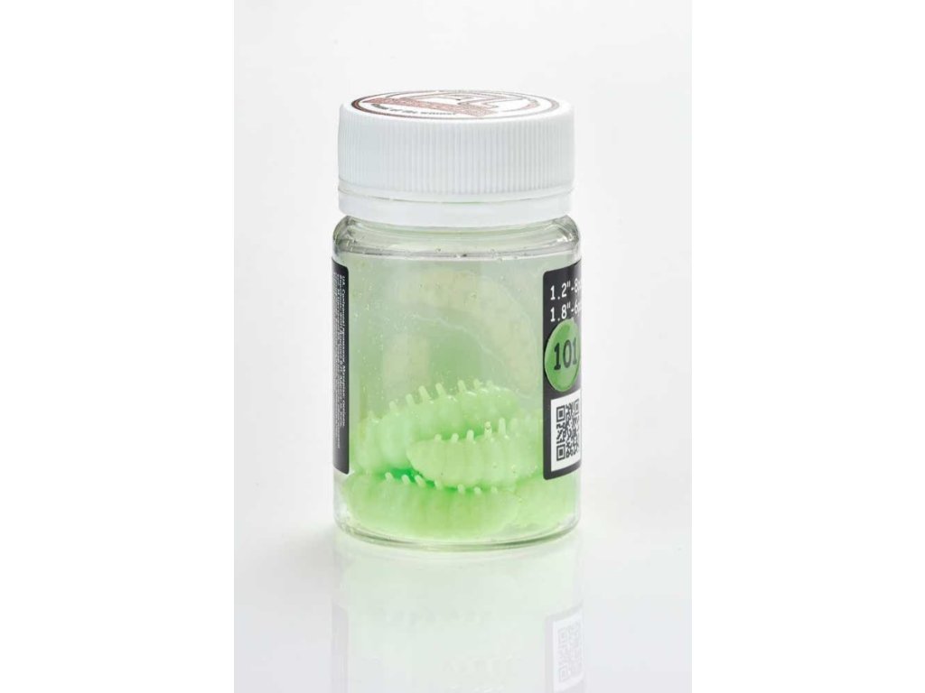 Fresh Lures Mokhnatka 1,2" 3cm 1,58gr #101 Fluo Zelená - Gumová nástraha Fresh Lures Mokhnatka imitujúca larvu láka k útoku aj najviac pasívne pstruhy. Chutne vyzerajúce mäsité telo tejto pstruhovej nástrahy vytvára jemné a hladké pohyby počas ťahania vodou. Tohoto výsledku bolo docielené vďaka starostlivému výberu silikónovej zmesi na výrobu nástrahy.