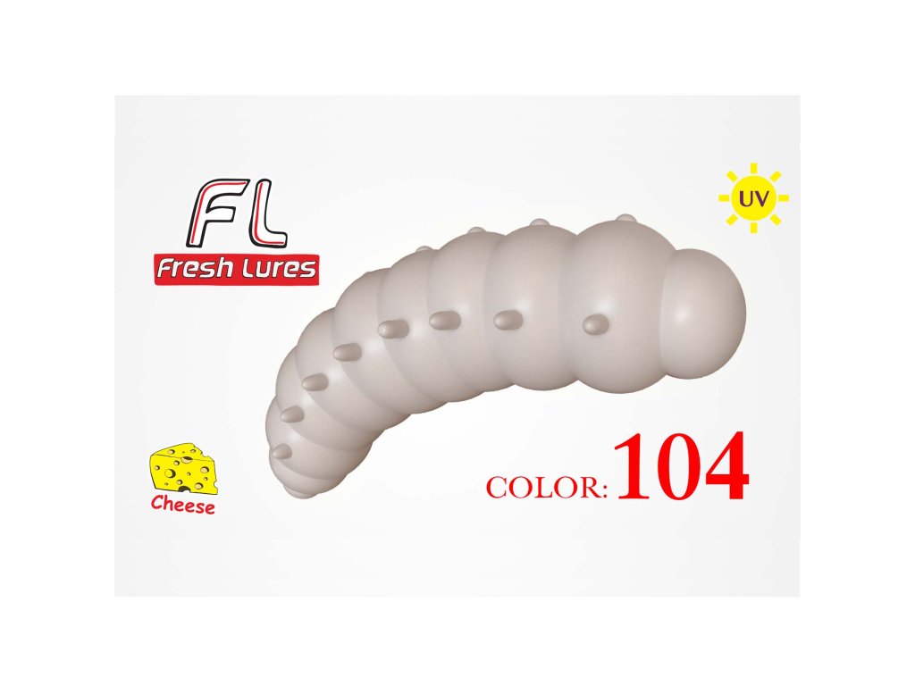 Fresh Lures Mokhnatka 1,2" 3cm 1,58gr #104 Biela - Gumová nástraha FreshLures Mokhnatka imitujúca larvu láka k útoku aj najviac pasívne pstruhy. Chutne vyzerajúce mäsité telo tejto pstruhovej nástrahy vytvára jemné a hladké pohyby počas ťahania vodou. Tohoto výsledku bolo docielené vďaka starostlivému výberu silikónovej zmesi na výrobu nástrahy.Nástraha FreshLures Mokhnatka 1.2" je dodávaná v rôznych úspešných farbách, takže si vyberie naozaj každý rybár. Modifikovaný atraktant s vôňou syra nedovolí pstruhom vypľuť nástrahu bezprostredne po zábere. Nástraha je ale účinná aj na ďalšie druhy rýb, ako sú napríklad hrúbky.