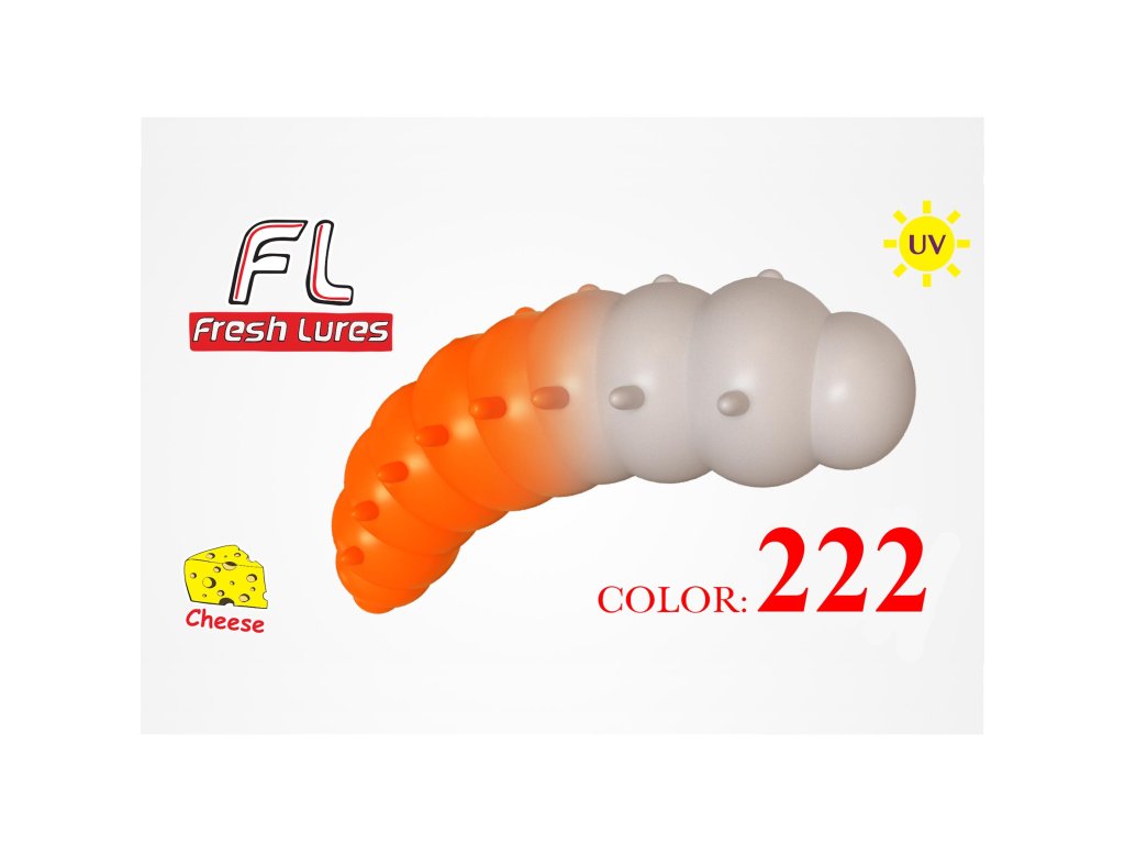 Fresh Lures Mokhnatka 1,2" 3cm 1,58gr #222 Bielo-Oranžová - Gumová nástraha Fresh Lures Mokhnatka imitujúca larvu láka k útoku aj najviac pasívne pstruhy. Chutne vyzerajúce mäsité telo tejto pstruhovej nástrahy vytvára jemné a hladké pohyby počas ťahania vodou. Tohoto výsledku bolo docielené vďaka starostlivému výberu silikónovej zmesi na výrobu nástrahy.Nástraha FreshLures Mokhnatka 1.2" je dodávaná v rôznych úspešných farbách, takže si vyberie naozaj každý rybár. Modifikovaný atraktant s vôňou syra nedovolí pstruhom vypľuť nástrahu bezprostredne po zábere. Nástraha je ale účinná aj na ďalšie druhy rýb, ako sú napríklad hrúbky.