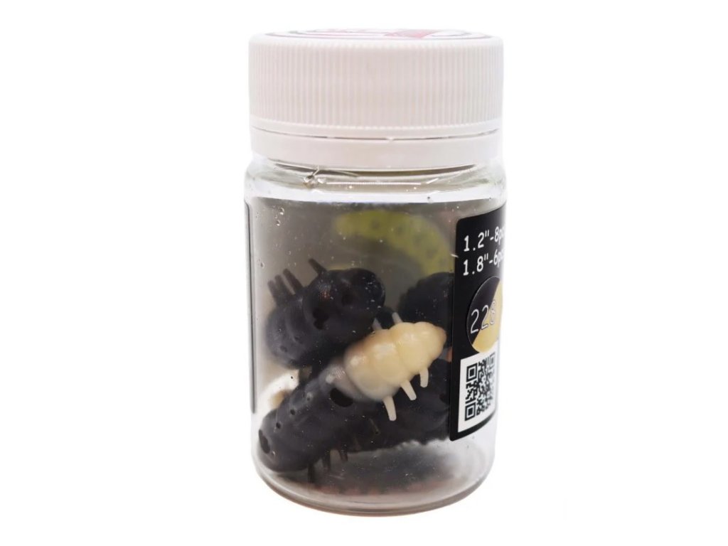 Fresh Lures Mokhnatka 1,2" 3cm 1,58gr #228 Čierno-Máslová - Gumová nástraha Fresh Lures Mokhnatka imitujúca larvu láka k útoku aj najviac pasívne pstruhy. Chutne vyzerajúce mäsité telo tejto pstruhovej nástrahy vytvára jemné a hladké pohyby počas ťahania vodou. Tohoto výsledku bolo docielené vďaka starostlivému výberu silikónovej zmesi na výrobu nástrahy.Nástraha FreshLures Mokhnatka 1.2" je dodávaná v rôznych úspešných farbách, takže si vyberie naozaj každý rybár. Modifikovaný atraktant s vôňou syra nedovolí pstruhom vypľuť nástrahu bezprostredne po zábere. Nástraha je ale účinná aj na ďalšie druhy rýb, ako sú napríklad hrúbky.
