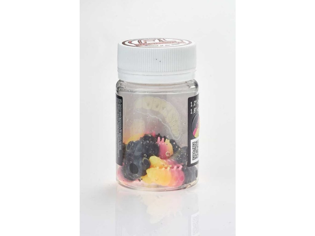 Fresh Lures Mokhnatka 1,2" 3cm 1,58gr #416 Čierno Ružovo Žltá - Gumová nástraha Fresh Lures Mokhnatka imitujúca larvu láka k útoku aj najviac pasívne pstruhy. Chutne vyzerajúce mäsité telo tejto pstruhovej nástrahy vytvára jemné a hladké pohyby počas ťahania vodou. Tohoto výsledku bolo docielené vďaka starostlivému výberu silikónovej zmesi na výrobu nástrahy.