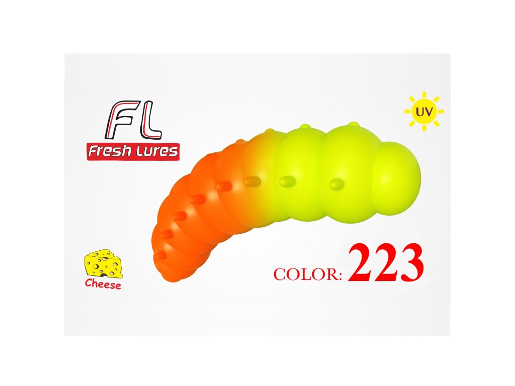 Fresh Lures Mokhnatka 1,8" 4,6cm 2,93gr #223 Žlto-Oranžová - Gumová nástraha Fresh Lures Mokhnatka imitujúca larvu láka k útoku aj najviac pasívne pstruhy. Chutne vyzerajúce mäsité telo tejto pstruhovej nástrahy vytvára jemné a hladké pohyby počas ťahania vodou. Tohoto výsledku bolo docielené vďaka starostlivému výberu silikónovej zmesi na výrobu nástrahy.Nástraha Fresh Lures Mokhnatka 1.8" je dodávaná v 6 úspešných farbách, takže si vyberie naozaj každý rybár. Modifikovaný atraktant s vôňou syra nedovolí pstruhom vypľuť nástrahu bezprostredne po zábere. Nástraha je ale účinná aj na ďalšie druhy rýb, ako sú napríklad hrúbky.