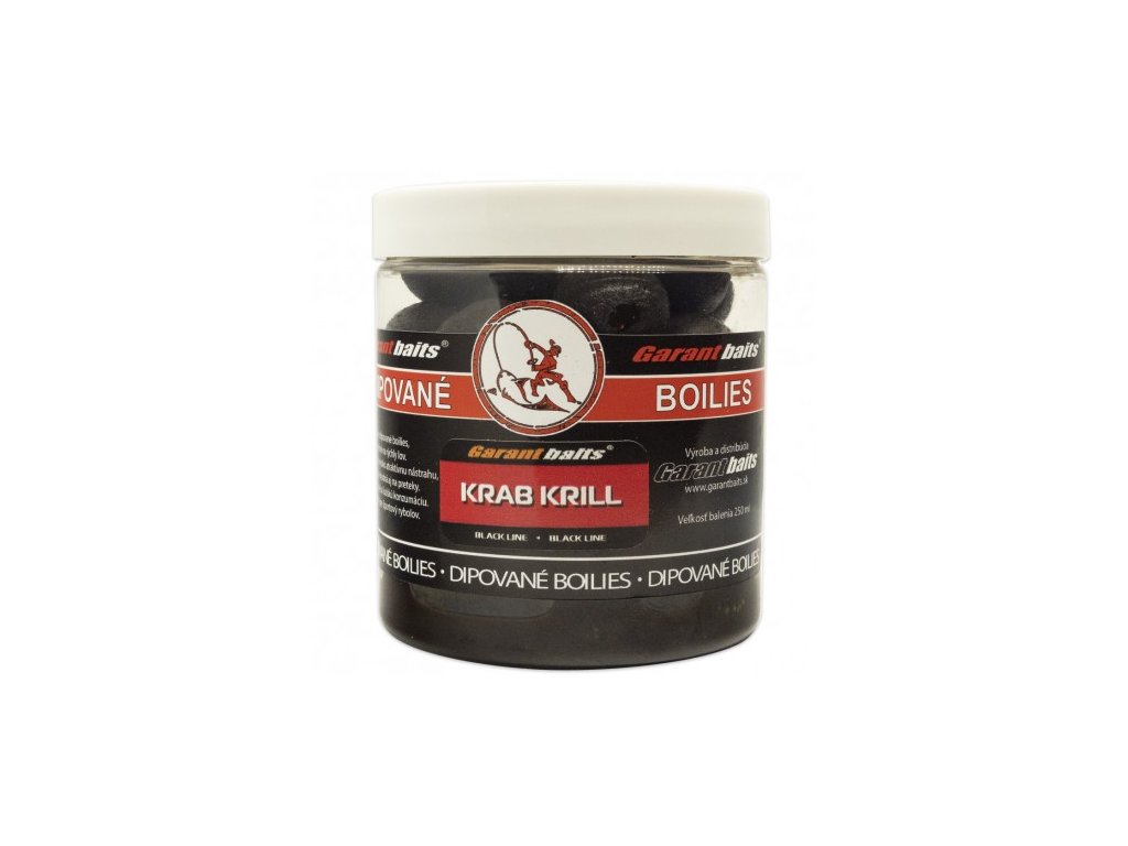 Garantbaits Boilies v Dipe Krab Krill 20mm 250ml - Silne dipované boilies, určené na rýchly lov ktore začínajú pracovať okamžite. Rozdiel oproti klasickým boilies je v dôslednej príprave aby nástraha bola vysoko atraktívna , ktorá je vhodná aj na preteky.