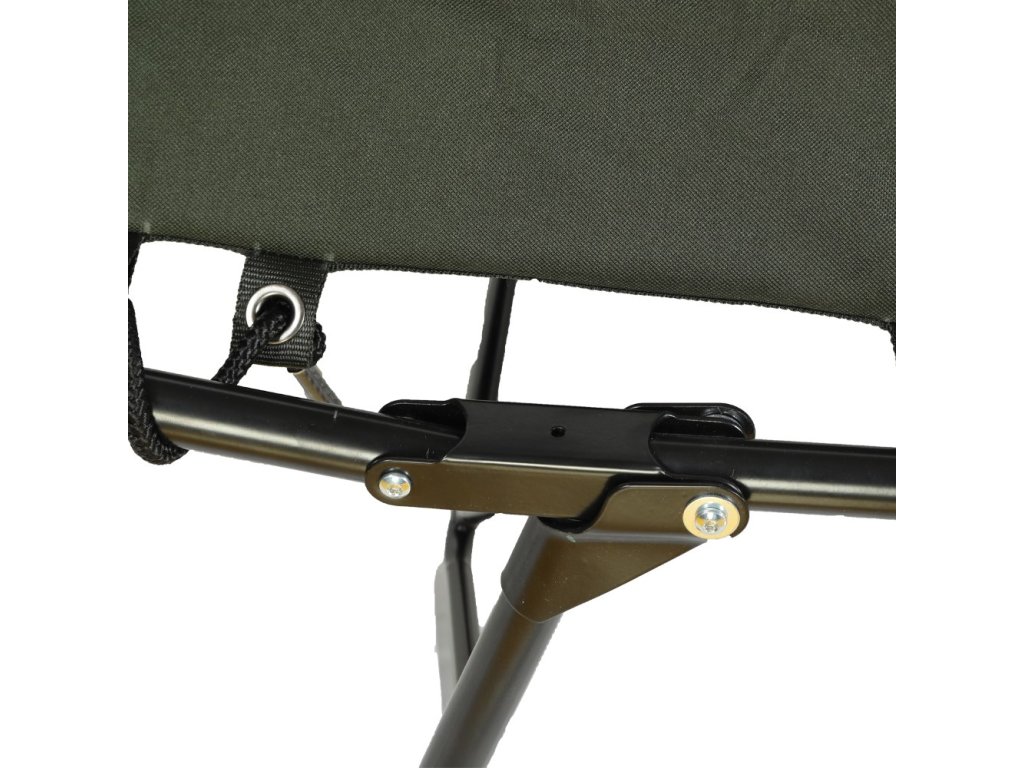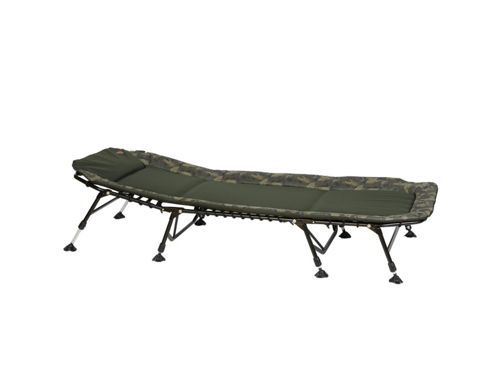 Kvalitne spracovaná konštrukcia má vysokú nosnosť do 150kg. Nožičky lehátka sú zakončené veľkými labkami proti zaboreniu do blata. Každý rybár si môže na tomto lehátku nastaviť požadovanú tuhosť matraca.
