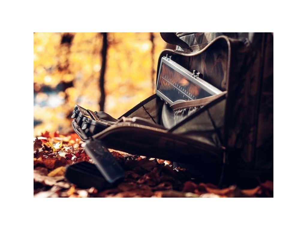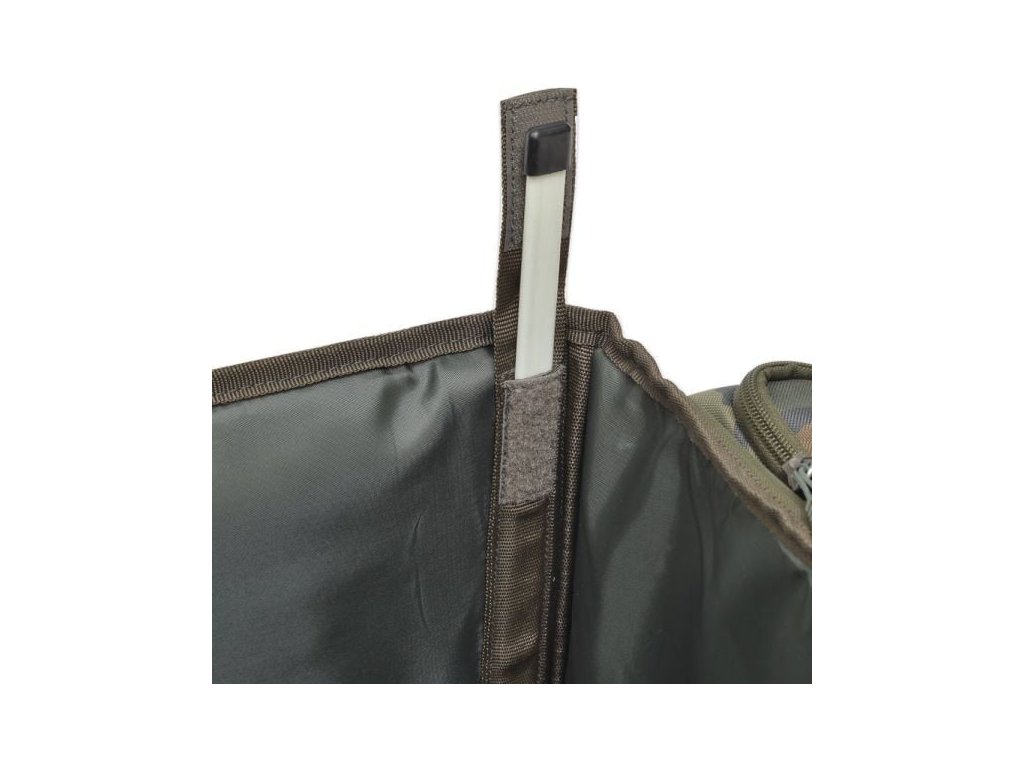 Bočné vrecko obsahuje tri nádoby na boilies a penové zásobníky na náväzce
