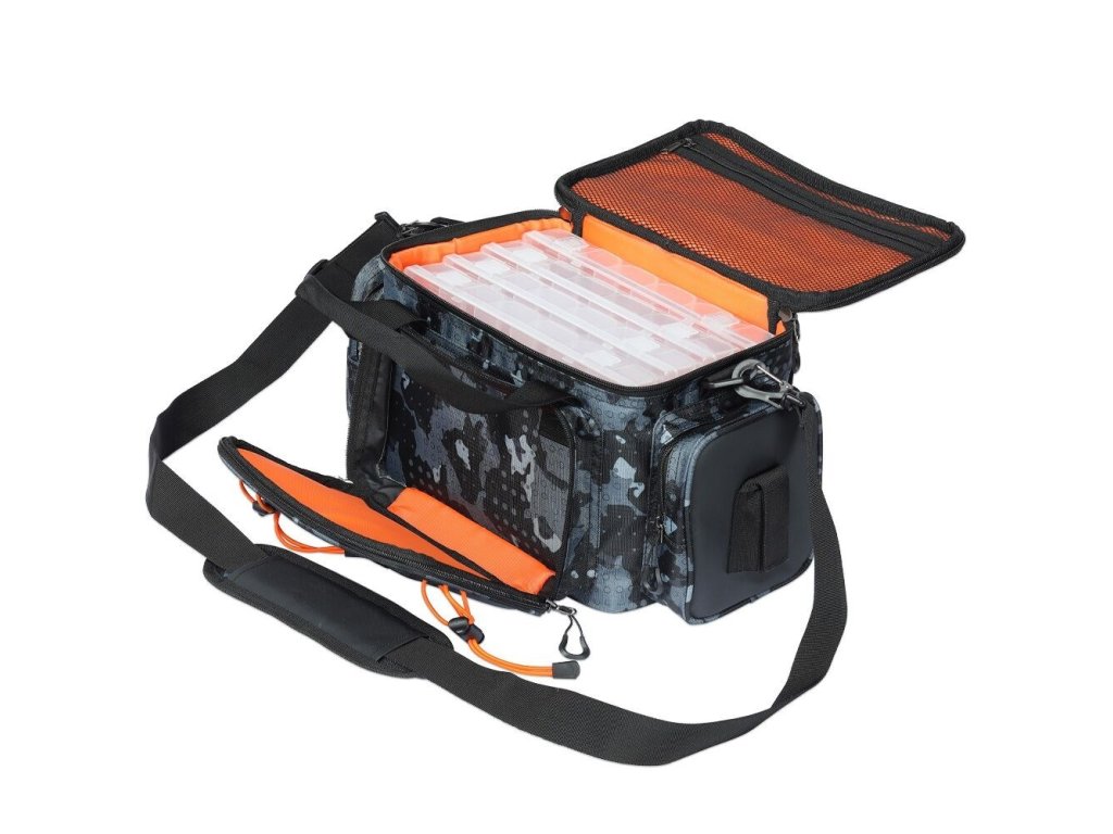 Giants Fishing prívlačová taška Spinning Bag Large - Väčšia prívlačová taška s popruhom cez rameno, ktorá obsahuje štyri väčšie krabičky na nástrahy.