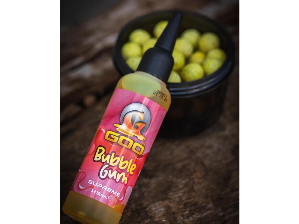 Goo Bubble Gum Supreme 115ml - Korda Goo je dip, booster a zvýrazňovač v jednom. Oblak, ktorý vychádza z nástrahy, ktorá bola potretá s Korda Goo, musíte vidieť, aby ste uverili a práve pre neho je Korda Goo tak revolučný. Táto tajomná kvapalina obsahuje starostlivo vyvážené atraktory a chuťové stimulátory, ktoré podporujú u kaprov vysokú žravosť a dokážu ich dostať k nástrahe, či už sú kdekoľvek v stĺpci.BUBBLE GUM - Sladká, povznášajúca, ovocná a neuveriteľne šťavnatá aróma ... to je Bubble Gum Supreme Goo! Má ovocnú vôňu, ktorá zavonia do úst a je klamne silná. Rovnako ako niektoré ďalšie super populárne goo (izotonické a ananásové) od spoločnosti Kiana, má priesvitný žltý odtieň, ktorý dodáva jemné zafarbenie, ktoré dramaticky nemení vzhľad návnady, do ktorej sa pridáv