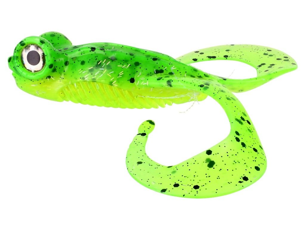 Gunki Bull Frog 13cm Lime Chart Pepper - Je nástraha s dvoma chvostíkmi, ktorá verne napodobňuje žabu. Veľké oči ešte zvyšujú jej atraktivitu.