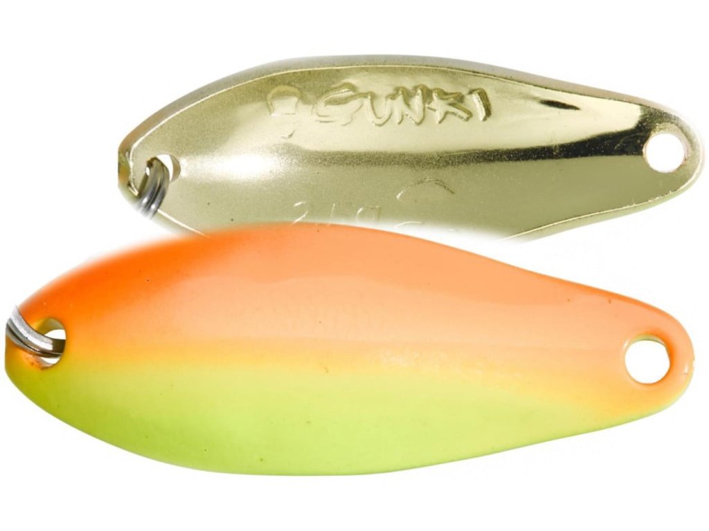 Gunki Plandavka Drift 2,5g Orange Yellow Gold - Jedinečná plandavka s pomaly vlniacim sa pohybom od značky Gunki Drift je vhodná na lov pstruhov na vodných nádržiach, alebo jazerách tzv. Trout Area.