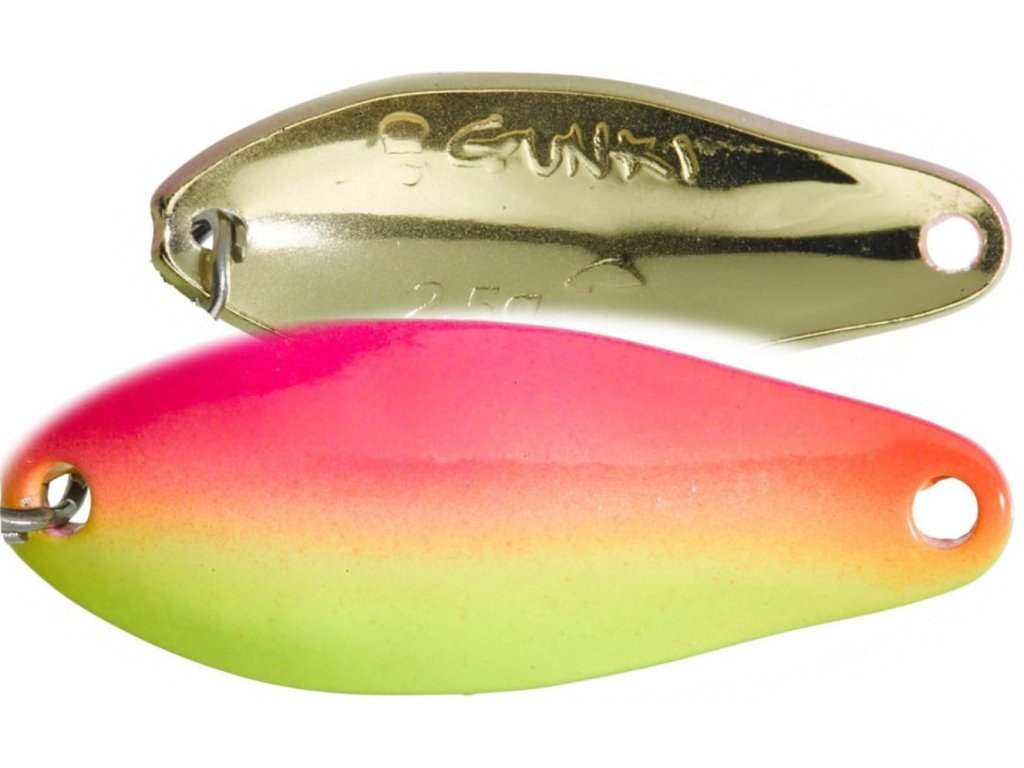 Gunki Plandavka Drift 2,5g Pink Yellow Gold - Jedinečná plandavka s pomaly vlniacim sa pohybom od značky Gunki Drift je vhodná na lov pstruhov na vodných nádržiach, alebo jazerách tzv. Trout Area.