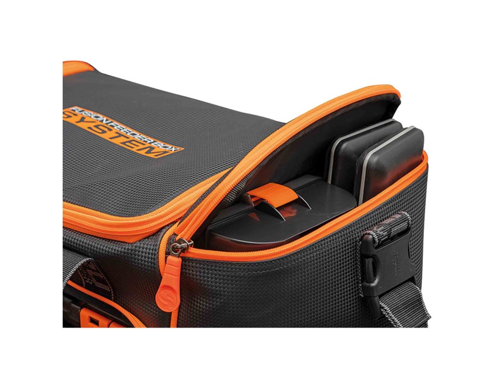 Silný, odolný a štýlový systém Fusion Feeder Box je dokonalým riešením pre prepravu až TROCH Fusion Feeder Boxov. Dve vonkajšie vrecká sú ideálne pre uloženie ďalších potrebných rybárskych potrieb a doplnkov - perfektný pre háčiky, kufre atď. K dispozícii sú aj vrecká na zips pod vekom, ktoré sú ideálne pre vlasca, telefón / kľúče a osobné veci.