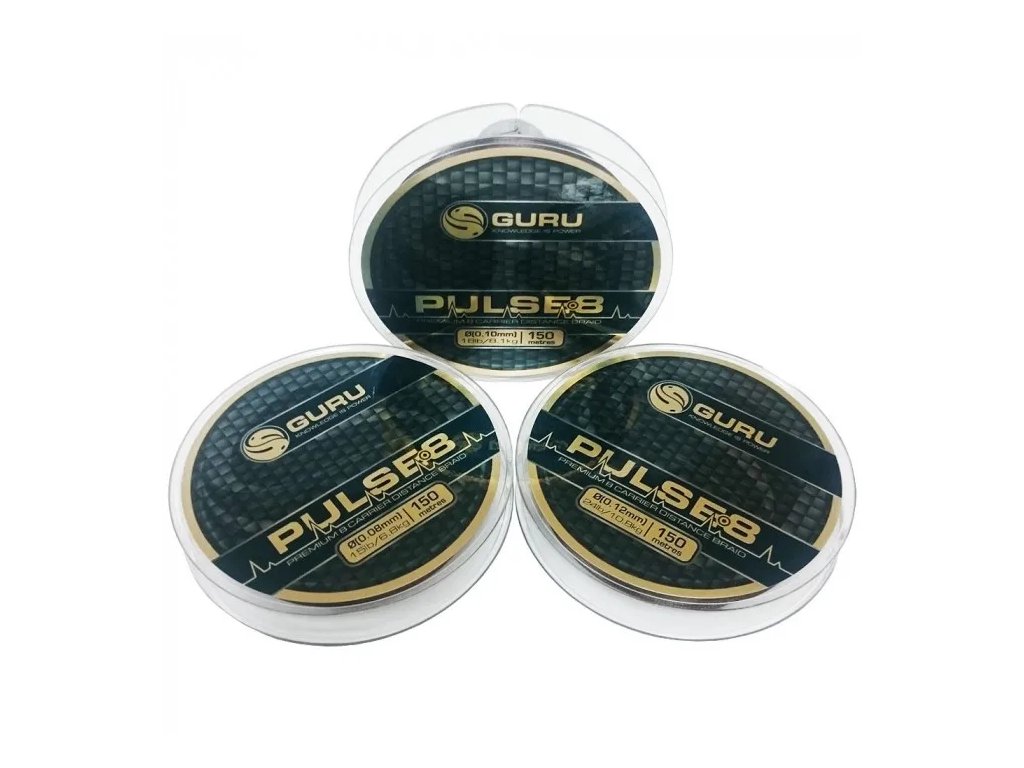 Guru Pulse 8 Braid 0,08 mm - 150 m - Pulse 8 Braid je vysoko kvalitný osem-vláknová šnúra. Pri výrobe sa použilo 8 silných vlákien, čo zvyšuje všetky užitočné vlastnosti tejto šnúry.Táto šnúra je ultra tenká, jemná a super silná aj pri rybolove vo veľkých vzdialenostiach.. Použitie tejto šnúry ponúka počas zdolávania priamy kontakt s rybou, má nulovú pružnosť čo je pri love na feeder veľmi dôležité.