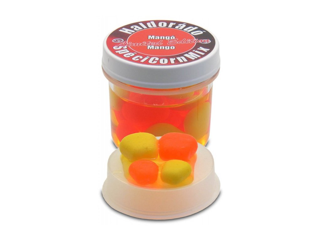 Haldorado Specicorn Limited Edition Mango - Produktová rodina Haldorádó SpéciCorn je na maďarskom trhu dlhodobo dominantná. Väčšina domácich kaprárov bude mať takmer určite v taške 1-2 alebo viac takýchto téglikov. V priebehu rokov sa ukázalo, že tieto návnady sú oveľa viac než len kus plastu. Predvádzajú svoj skutočný úlovok, najmä na divokých vodách plných trpasličích sumcov a iných znepokojujúcich malých rýb, pričom vyberajú cenné ryby!V priebehu rokov sa náš sortiment rozšíril o niekoľko nových variantov návnad, no zatiaľ najobľúbenejšími sú SpéciCorn a SpéciCorn Mega, teda normálna a veľká gumená kukurica. Naši používatelia sa však rozchádzajú v názore na víťazné príchute a farby. Dostali sme množstvo nápadov a návrhov, z ktorých sme si „len“ museli vybrať to najlepšie, čo sme mohli očakávať. Nasledovala séria testov a skúšobného rybolovu a nakoniec zostalo týchto 6 verzií: