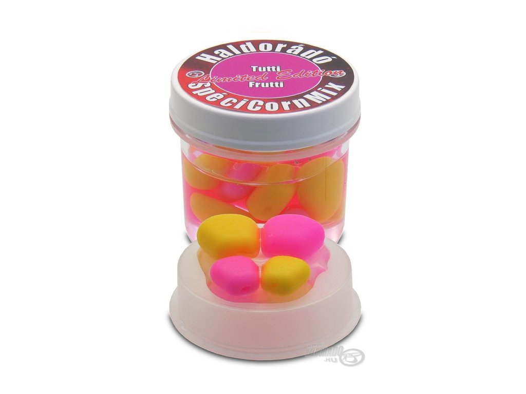 Haldorado Specicorn Limited Edition Tutti Frutti - Produktová rodina Haldorádó SpéciCorn je na maďarskom trhu dlhodobo dominantná. Väčšina domácich kaprárov bude mať takmer určite v taške 1-2 alebo viac takýchto téglikov. V priebehu rokov sa ukázalo, že tieto návnady sú oveľa viac než len kus plastu. Predvádzajú svoj skutočný úlovok, najmä na divokých vodách plných trpasličích sumcov a iných znepokojujúcich malých rýb, pričom vyberajú cenné ryby!V priebehu rokov sa náš sortiment rozšíril o niekoľko nových variantov návnad, no zatiaľ najobľúbenejšími sú SpéciCorn a SpéciCorn Mega, teda normálna a veľká gumená kukurica. Naši používatelia sa však rozchádzajú v názore na víťazné príchute a farby. Dostali sme množstvo nápadov a návrhov, z ktorých sme si „len“ museli vybrať to najlepšie, čo sme mohli očakávať. Nasledovala séria testov a skúšobného rybolovu a nakoniec zostalo týchto 6 verzií: