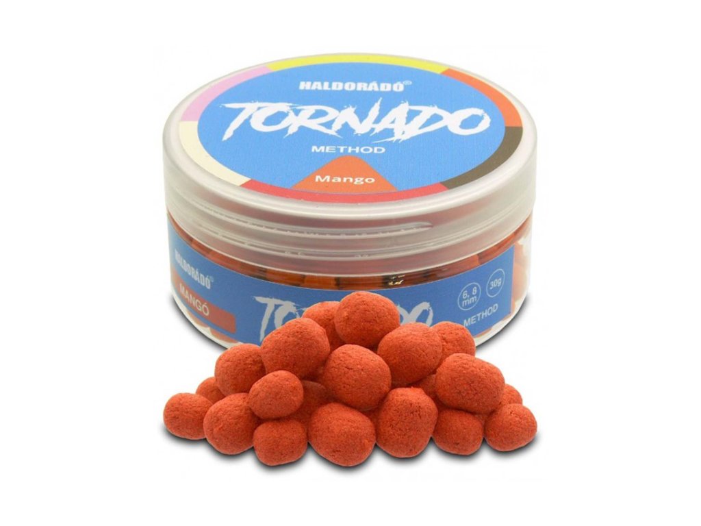 Haldorádo Tornado Method Mango 6 a 8mm 30g - táto nástraha disponuje klasickým valcovitým tvarom, typickým pre method feederové nástrahy, ktorý je pre tento typ lovu jednoznačne lepší.V tégliku nájdeš 6 a 8 milimetrové wafter (umiernene plávajúce) pelety v už dobre známych a osvedčených Tornado príchutiach.Spôsob prezentácie na nástrahovom ostni umožňuje využiť výhody arómu chrliacich, „dymiacich“ nástrah, aj pri jemnejších rybačkách.Vyplytvajúc z jej vztlakových vlastností, postačí na ponorenie tejto nástrahy aj menší 7 milimetrový, alebo Fine nástrahový osteň, vďaka čomu bude nástraha čakať na prichádzajúce ryby v optimálnej polohe.