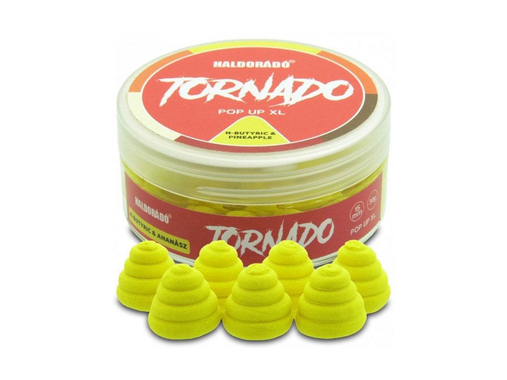 Haldorádo Tornado Pop Up XL Ananás N-Butyric Acid 15mm 30g - je pozoruhodne tvarovaná, mimoriadne atraktívna, varená, plávajúca nástraha, ktorá si dokáže zachovať vo vode tvar aj nadnášacie vlastnosti po celé dni, zatiaľ čo zo seba neprestajne chrlí vábivú príchuť a arómu. Príchuť a arómu však uvoľňuje pomaly a rovnomerne, v žiadnom prípade vo vode „nedymí“.Dalo by sa povedať, že spomedzi všetkých nástrah sme sa tejto venovali asi najdôkladnejšie. Preskúšali sme ju na veľkom počte testovacích plôch, či už šlo o malé jazierka, veľké nádrže, alebo obrovské prirodzené plochy. Všade sa ukazovala byť neuverteľne chytľavá!