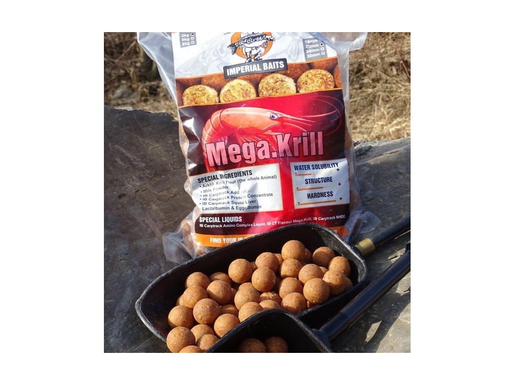 Imperial Baits Boilies Mega.Krill 16mm 1kg - Atraktívna rada guličiek od rady Imperial Baits. Mega Krill obsahuje veľké množstvo zložiek, hlavne živočíšnej múky (hlavne krillovej múčky) a tekuté zložky ako krill liquid a rôzne zložky.
