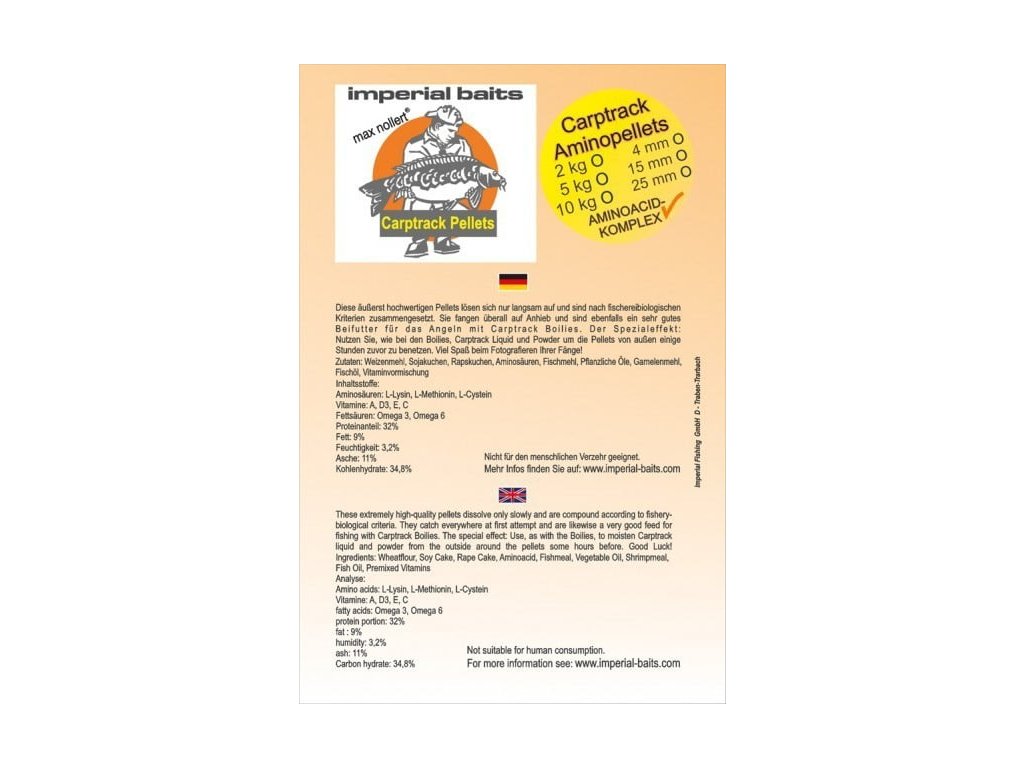 Imperial Baits Carptrack Aminopellets 20mm 2kg - Extrémne hodnotné pelety od značky IMPERIAL BAITS, ktoré sa pozvoľna rozpúšťajú. Sú ideálnym doplnkovým krmivom pri love nielen k Imperial boiliesom!