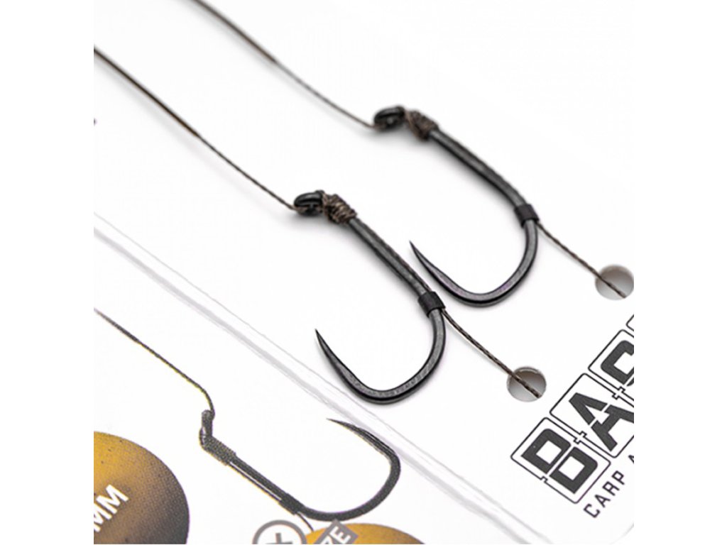 Korda Basix Hair Rigs Wide Gape Barbless vel.4 25lb : Sú hotové náväzce, ktoré stačí vytiahnuť z obalu a sú pripravené na použitie, stačí pridať boilies alebo waftery a môžete nahadzovať! Tieto montáže sú viazané s novým potiahnutým vlascom v kamuflážnej verzii BASIX Coated Hooklink, ktorý je napnutý pred háčikom BASIX Wide Gape, takže háčik má voľný pohyb a účinnejšie sa zasekáva.