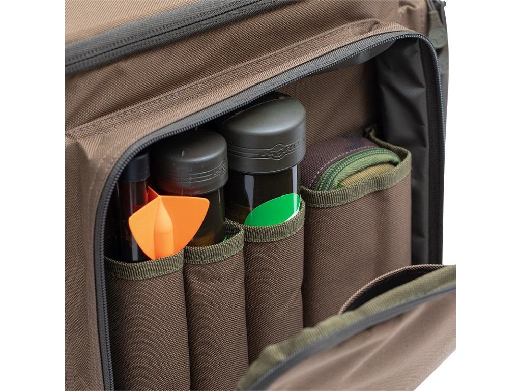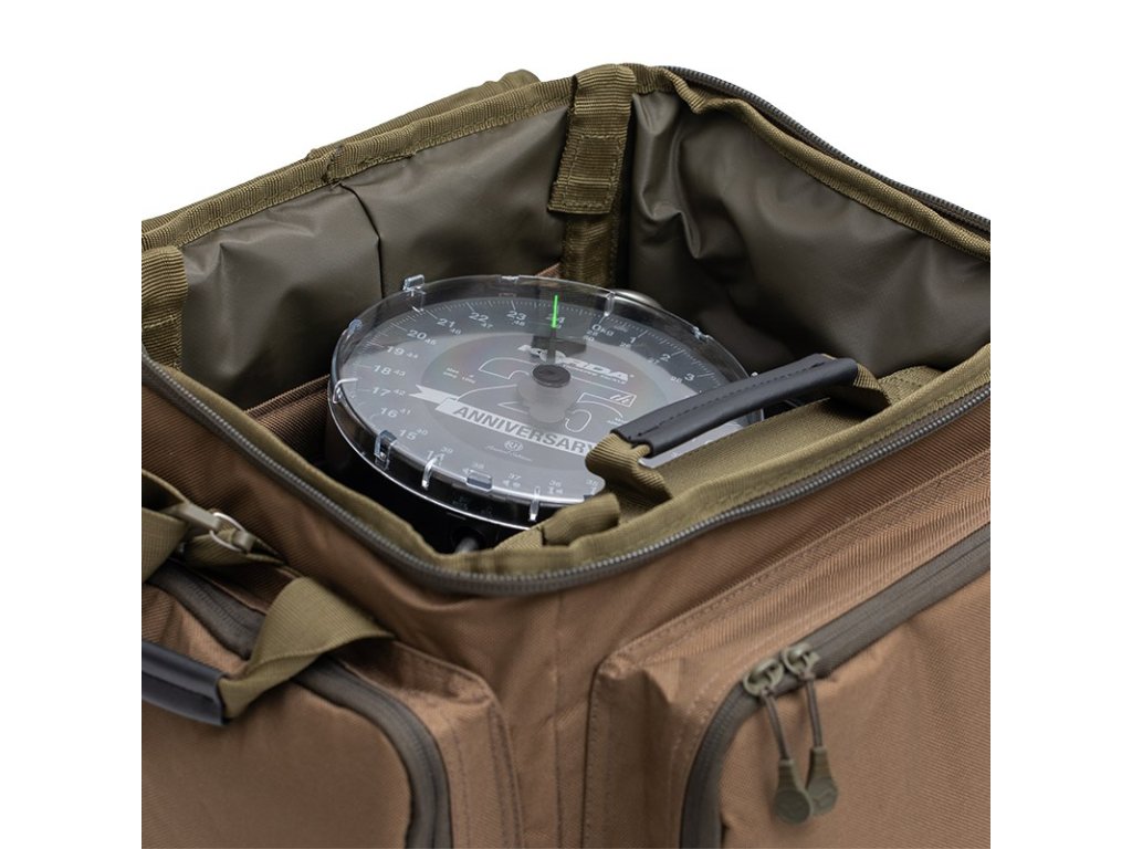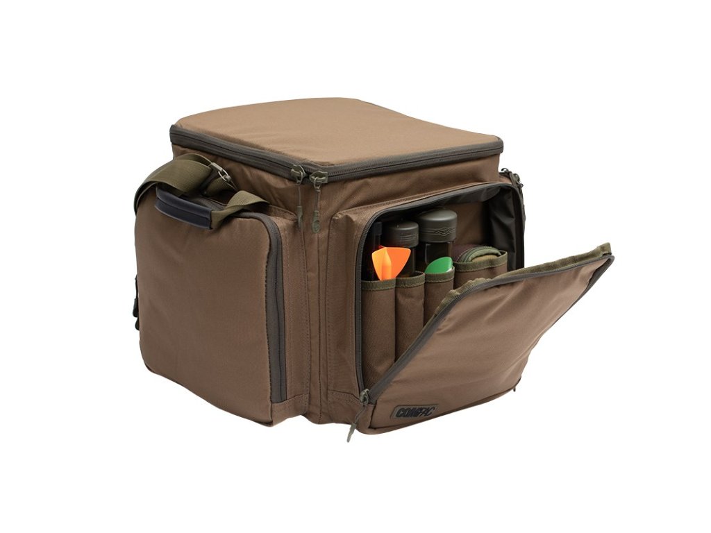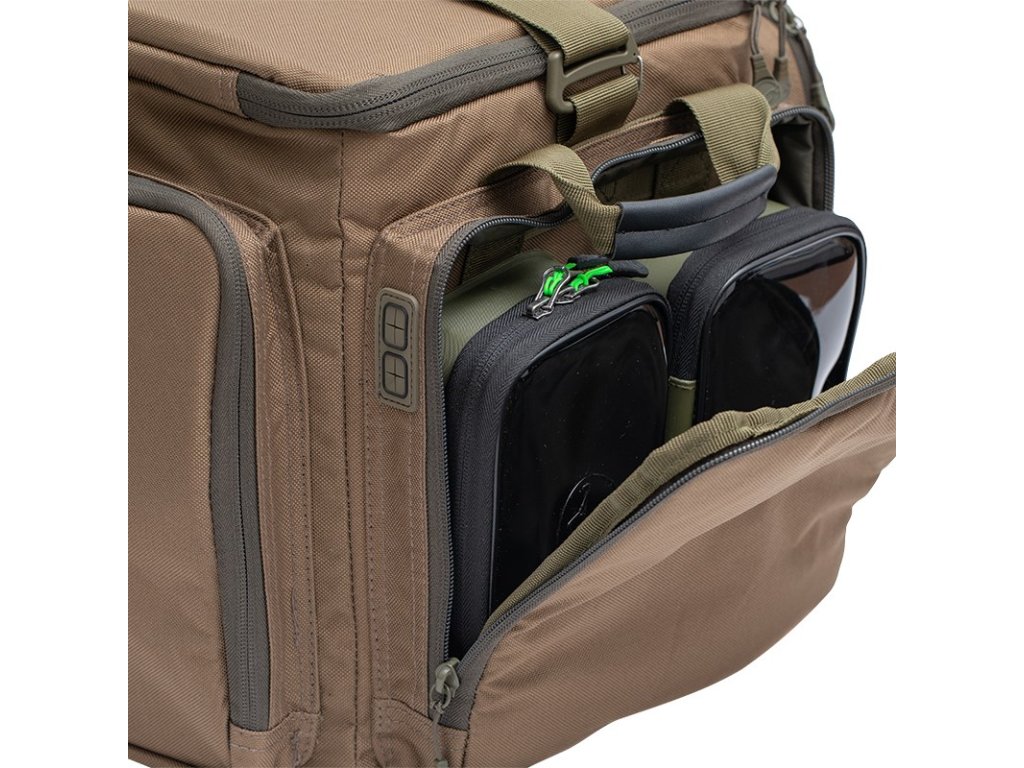Korda Compac Carryall Cube : Taška má štyri veľké externé vrecká a jej tvar kocky zaisťuje, že pri preprave na vozíku zaberie čo najmenej miesta.