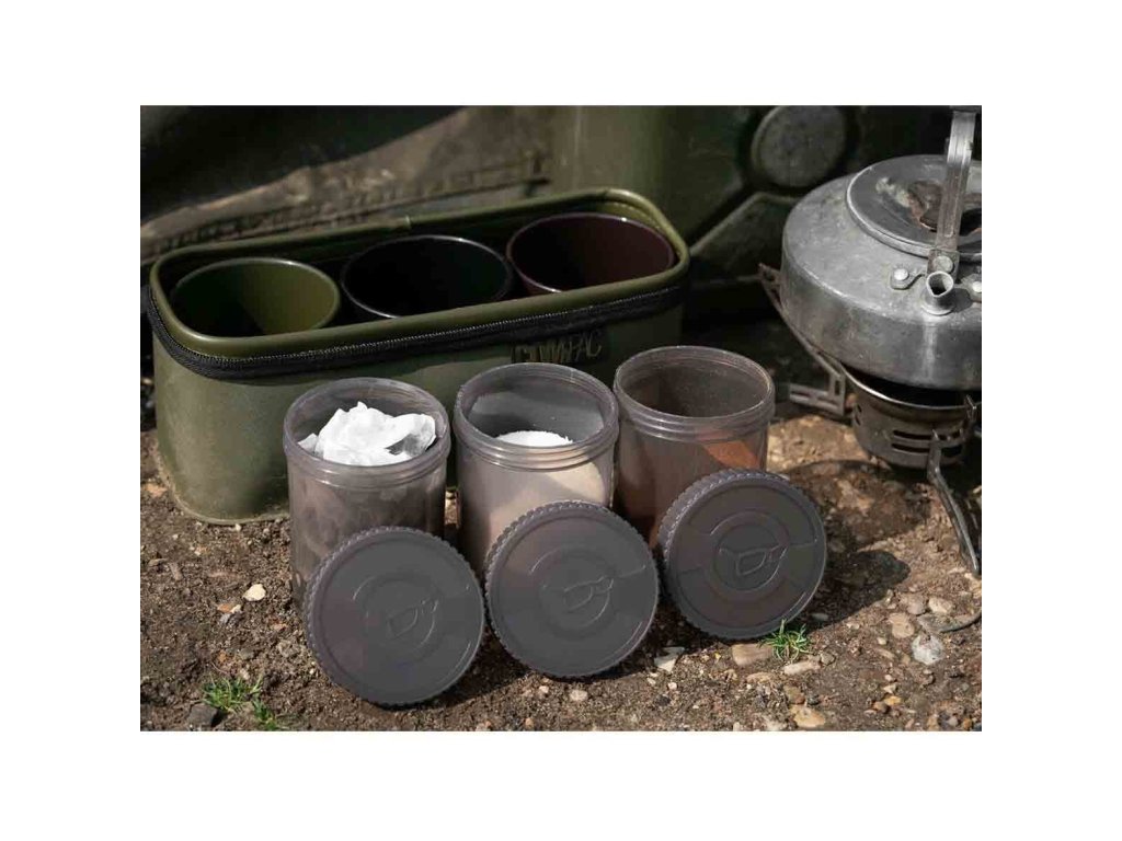 Každá súprava obsahuje aj tri plastové hrnce so skrutkovačmi s logom Korda určené na uskladnenie kávy, čajových vreciek a cukru.
