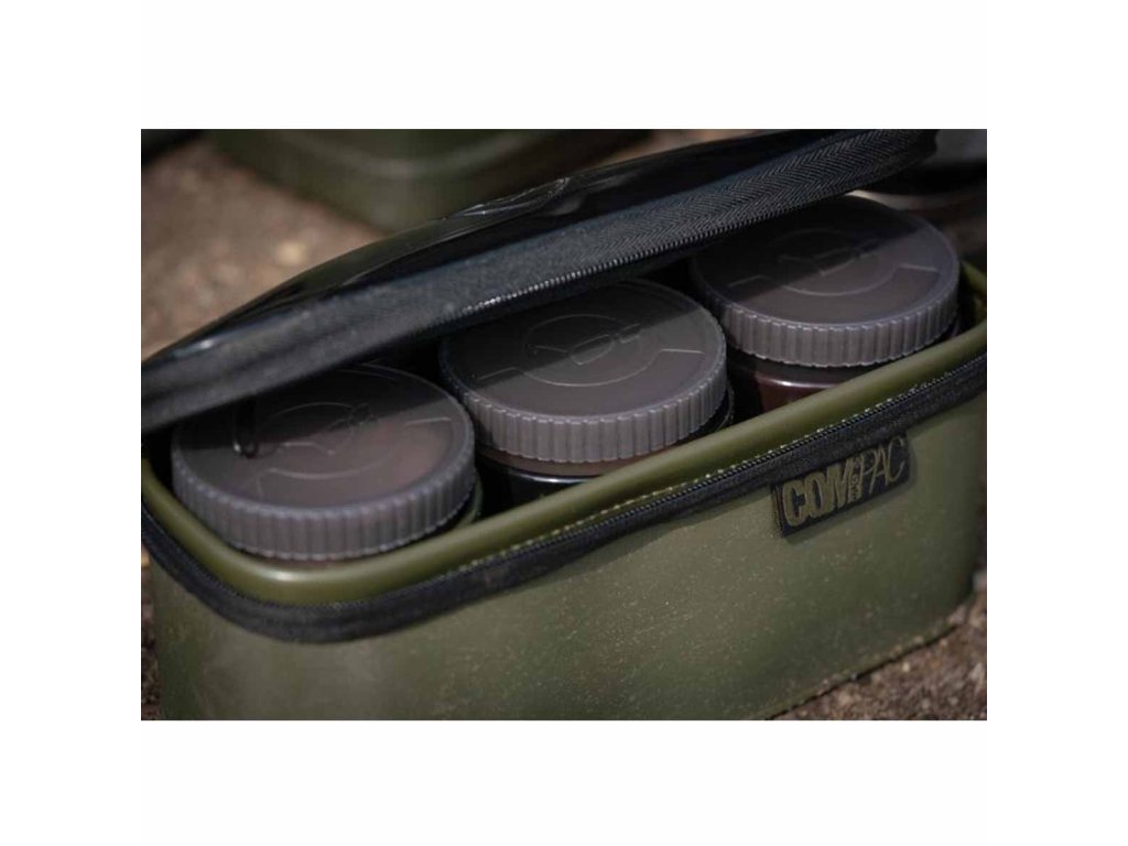 Ako všetky rad Korda Compac, aj vrecká na čajové súpravy sú vodotesné, so zváranými švami a priehľadným viečkom na zips, aby bol obsah ľahko identifikovateľný a ľahko sa čistí.
