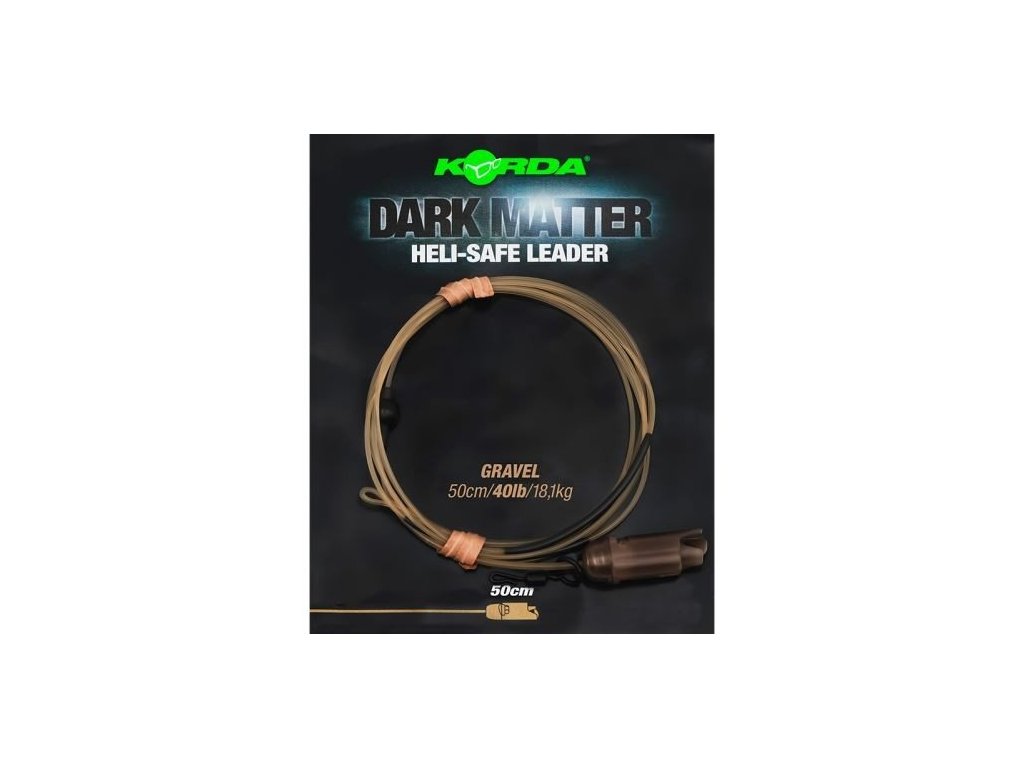 Korda Dark Matter Leader Heli 40lb Gravel-Tieto koncové montáže Dark Matter teraz zakomponujú náš Heli-Safe System a možno tak dokonale prezentovať vašu helikoptérovú zostavu, či už sa jedná o prezentáciu s obalenou šnúrkou alebo chod rig.