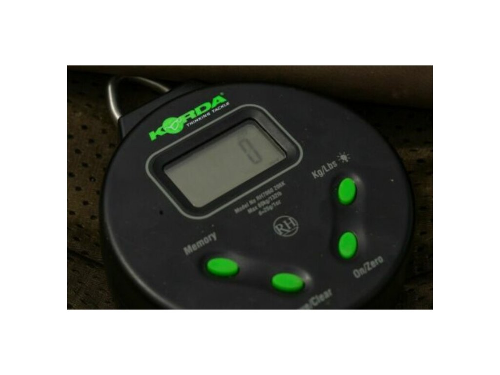 Korda Digital Scale 132lb 60kg : Tieto digitálne váhy boli navrhnuté v spolupráci so špičkovým výrobcom Reuben Heaton tak, aby poskytovali všetko, čo od nich rybár môže potrebovať, a tiež aby zvládli váženie aj tých najťažších kaprov, ktorého ulovíte doma alebo v zahraničí. Boli vyrobené tak, aby vydržali náročné podmienky pobytu na brehu za všetkých podmienok, a to vďaka vodotesnosti a odolnosti proti nárazom s kovaním z nerezovej ocele. Budú vážiť ryby až do hmotnosti 60 kg alebo v 1 oz / 25 g a sú ľahko čitateľné cez LCD obrazovku, ktorá má tiež zelené podsvietenie pre použitie v noci.