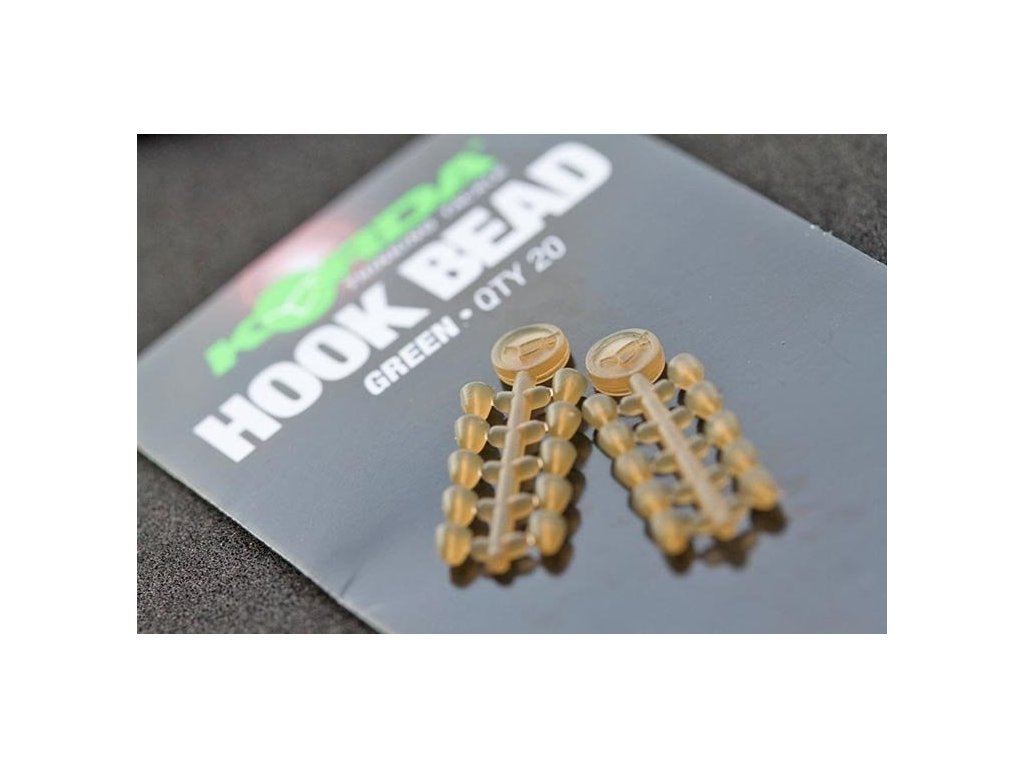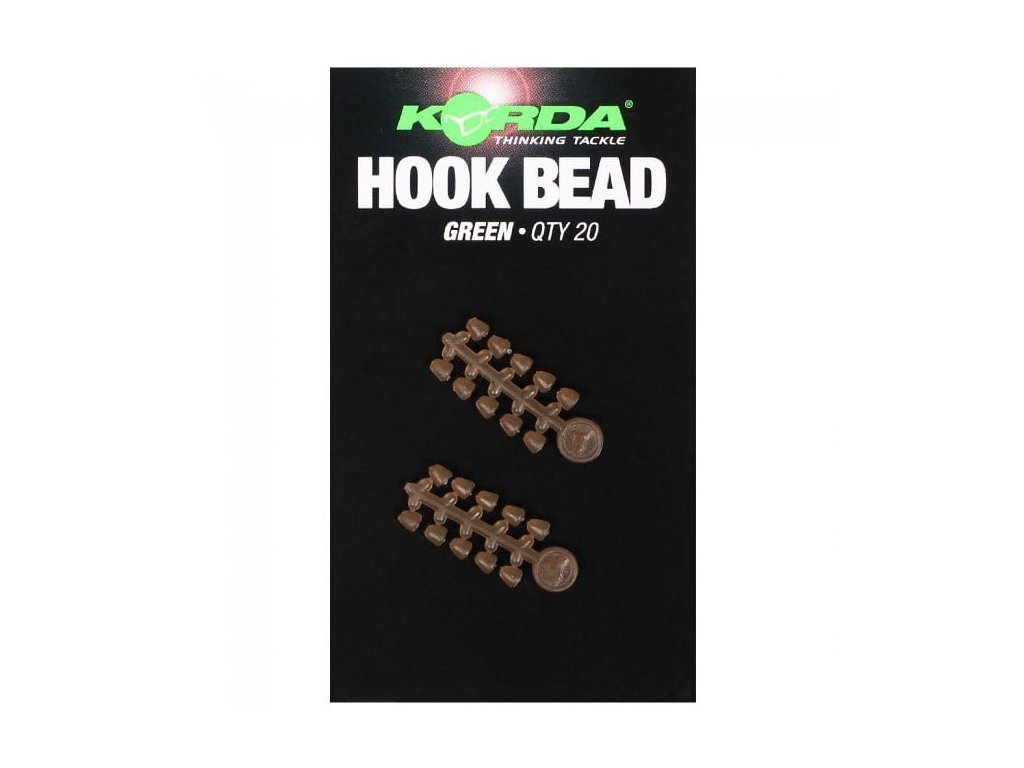 Korda Hook Bead Green Large - Korda Hook Bead sú malé gumové stopery na háčik pre vytvorenie vlasového prívesu s kĺzajúcim krúžkom po ramienku háčika, fixáciu mikro obratlíka v oblúčiku háčika ako pri 360° montáži.