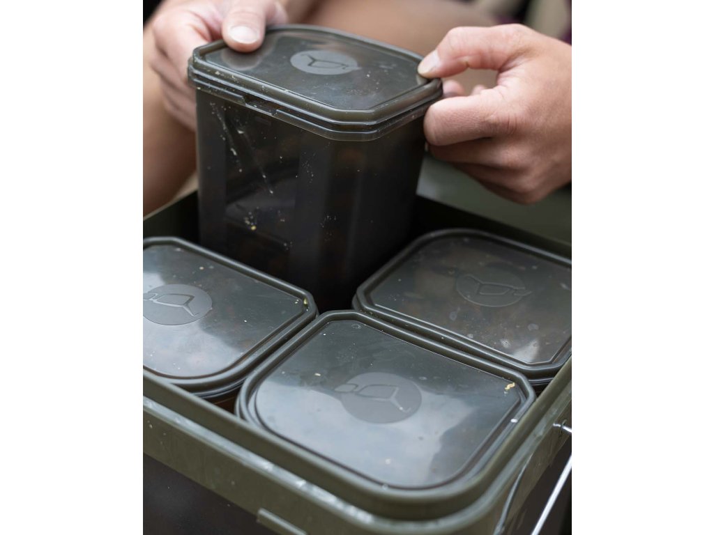 Korda Kontainer System 17l - Tento praktický systém má objem 17 litrov a je dodávaný so štyrmi samostatnými boxmi, z ktorých každý je možné naplniť niečím iným a kde buď nechcete miešať všetky návnady dohromady, alebo ich chcete pripraviť priamo na mieste. Vďaka tomu je vhodný pre situácie, kedy chcete kŕmiť návnadami rôznych veľkostí, a poskytuje vám ľahký prístup ku všetkým návnadám v jednom vedre, avšak stále vám umožňuje mať všetko rozdelené podľa vašej potreby – na rozdiel od toho, kedy ich zmiešate dohromady.Je tiež skvelý pri použití spodových zmesí, ktoré obsahujú drobné častice a pelety, a kde miešanie vopred môže spôsobiť, že niektoré druhy kŕmenia, ako je konope, vyschnú a plávajú, alebo sa pelety rozpadnú viac, než by ste chceli. Každý box je vzduchotesný a vodotesný, čo znamená, že v nej je možné bezpečne uchovávať tekutiny bezobáv z rozliatia, a pokiaľ vám na konci vašej výpravy zostane kŕmenie, ako napríklad partikel, môžete nádobu jednoducho vložiť do mrazničky tak aby bola pripravená na použitie na vaše ďalšie výprave. Pri dlhších výpravách môžete pred odchodom z mrazničky vytiahnuť náhradné boxy s kŕmením, čo zaistí, že zostane dlhšie čerstvé.