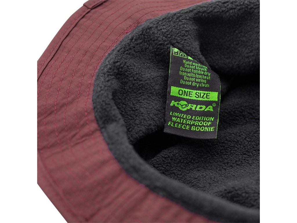 Korda LE Waterproof Boonie Burgundy : Fleecová vodeodolná čiapka Boonie je perfektnou voľbou, keď môže byť počasie nepredvídateľné, a je skvelá pre udržanie vašej hlavy v suchu a teple, samozrejme chráni proti dažďu, tak aby vám nestekal za krk alebo do očí (alebo na okuliare).Je vyrobená z vodeodolného bavlneného materiálu a lem pomáha dobre odvádzať vodu a zabraňuje tomu, aby vám stekala za krk - naozaj užitočné, keď sa vonku v daždi snažíte vytiahnuť prúty alebo sa prechádzate okolo jazera a hľadáte ryby.