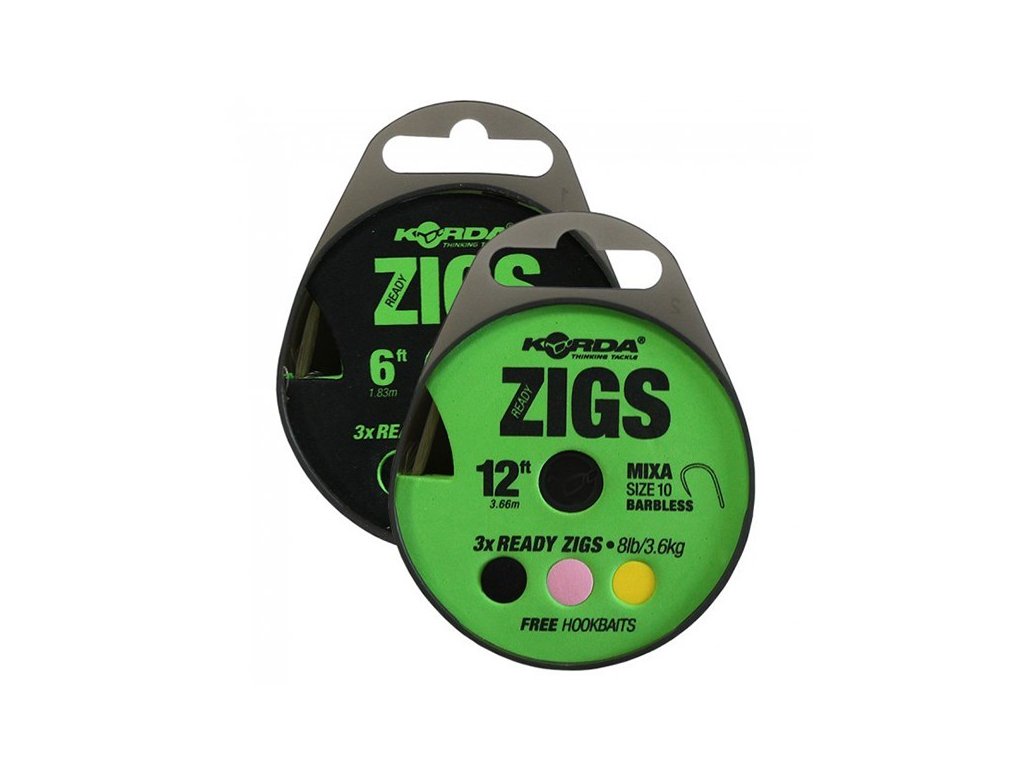 Korda Ready Zigs 180cm vel.10 - Háčik má ideálny tvar pre tento lov a hlavne neskutočnú ostrosť hrotu. Tie sú priviazané na 8lb špeciálny zig rig vlasec, ktorý nie je číry, ale je mierne zafarbený pre lepšiu kamufláž na väčšinu vôd. K dispozícii sú celkom 4 dĺžky náväzcov, ktoré sú balené vždy po 3ks na jednej EVA špulke. Vďaka tomuto praktickému baleniu sa nadväzce nemotajú a nevznikajú na nich ostré uhly, čo by zhoršovalo prezentáciu nástrahy. Po použití ich jednoducho namotáte späť na špulky a sú pripravené k ďalšiemu lovu.