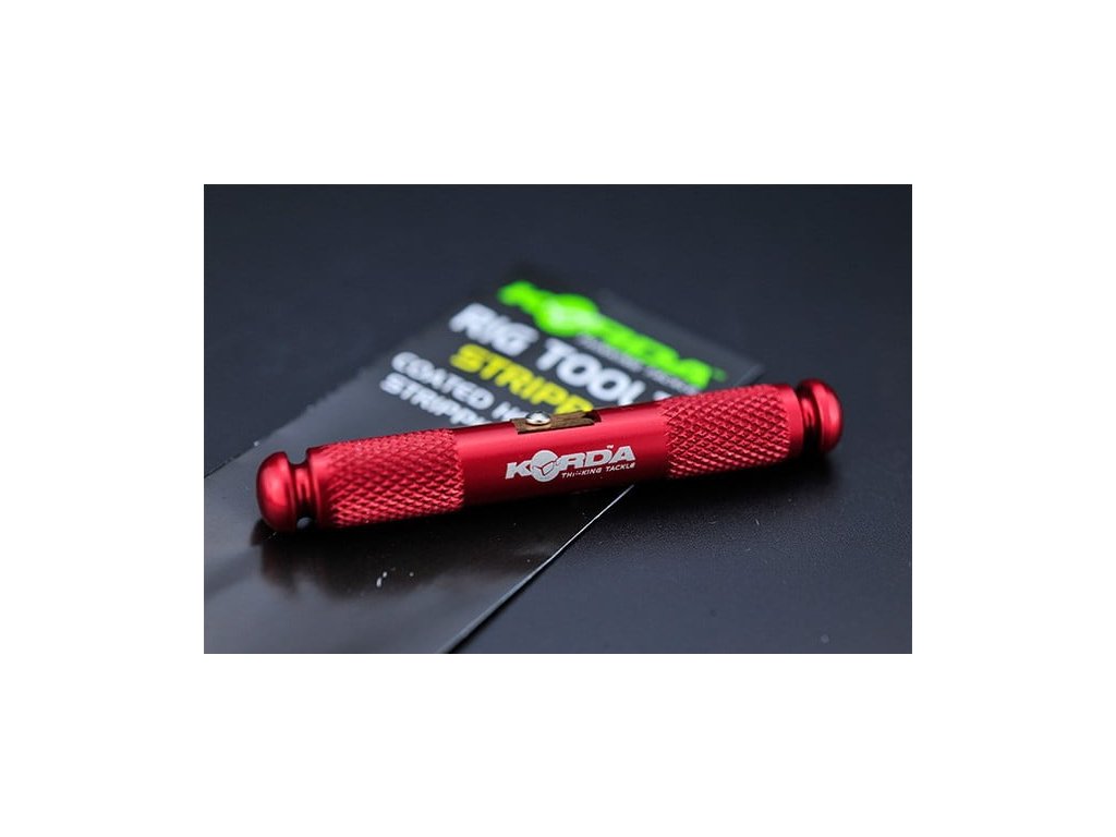 Korda Strippa Tool : Je unikátna pomôcka na zvliekanie poťahu zo stužených potiahnutých náväzcových šnúrok. Tento malý unikátny nástroj je vyrobený z eloxovaného hliníka. Je skutočným spasiteľom pre rybárov, ktorí to doteraz robili zubami a nechtami. Výroba stužených a kombinovaných náväzcov nebola nikdy tak jednoduchá.
