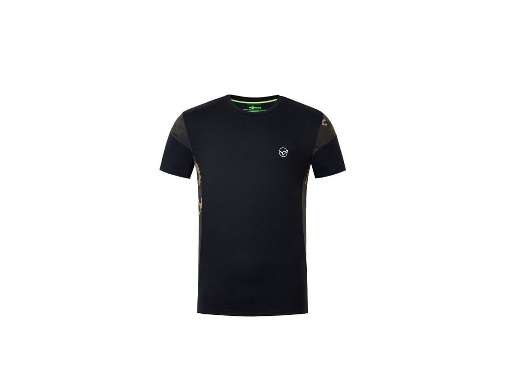 Korda Tričko Cut Tee Black vel.XXXL : Nové štýlové tričko Korda Le Cut Tee Black v čiernej farbe s povrchovou úpravou "peach skin", ktorá mu dodáva jemnú, zamatovú textúru a je mimoriadne príjemné na pokožku.Toto tričko má tmavé kamuflážne segmenty v hornej časti každého rukáva a po stranách trička. Výrazný tmavý kamuflážny vzor nájdete na niekoľkých odevoch z našej ponuky vrátane mikín, tričiek a teplákov. Biele logo Korda na hrudi dobre kontrastuje s čiernou farbou trička.
