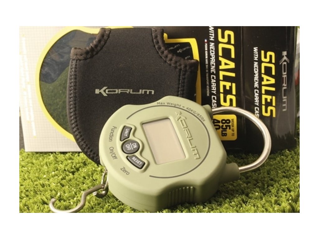 Korum Electronic Scales - Moderná digitálna váha od značky KORUM s modrým podsvietením displeja. Táto váha má ergonomicky tvarované telo s pogumovaným povrchom ktoré sa dodáva s neoprénovým púzdrom. Veľkou výhodou váhy je jeho prestnosť.