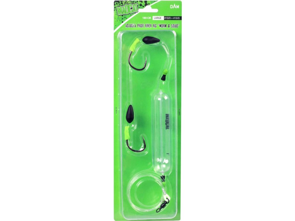 MadCat Adjusta Profi River Rig Worm & Squid vel.M 8/0 + 8/0 - Montáže s podvodným plavákom MADCAT® Adjusta Subfloat pre rybárčenie s dážďovkami alebo olihňami na dne rýchlo tečúcich riek.