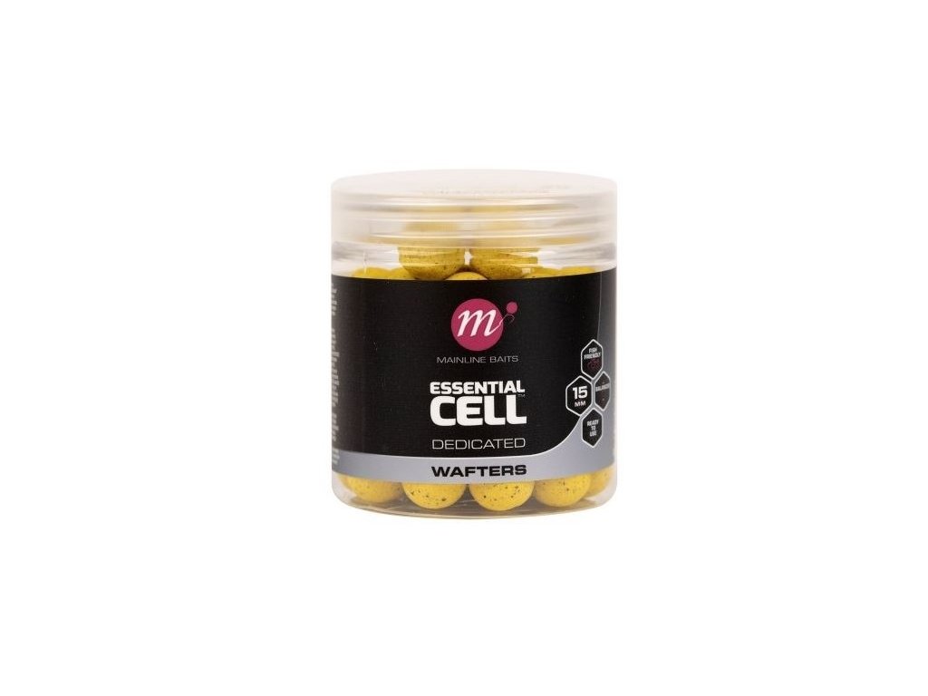 Mainline Balanced Wafters Essential Cell 15mm 250ml : Nové návnady Mainline Wafter sú kriticky vyvážené nástrahy, ktoré sa budú ľahko vznášať nad dnom a Váš háčik zostane ticho číhať na dne pod nimi. Vyvážená nástraha má tú výhodu, že sa kaprom ľahšie nasaje a tým sa docieli väčšie množstvo záberov, než u klasického boilies.