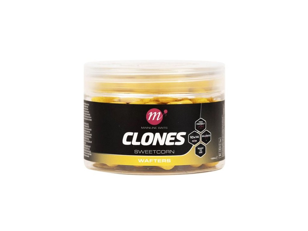 Mainline Clones Barrel Wafters Sweetcorn 13mm 250ml : Mainline Clones boli navrhnuté tak, aby vám poskytli odolnú návnadu na háčik, ktorú je možné loviť na zakŕmenom mieste, a bude sa k nej hodiť ako farbou, tak chuťou.