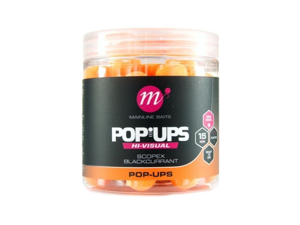 Mainline High Visual Pop-ups Scopex & Blackcurrant 15 mm : Plávajúce boilies High Visual Pop-ups s priemerom 15 mm, ktoré perfektne funguje aj v studenej vode. Skvelé na použitie po celý rok, toto boilie odceníte hlavne pri love v studenej vode. Vyrobené zo špeciálnej základnej zmesi s pridanými arómami a aditívami.