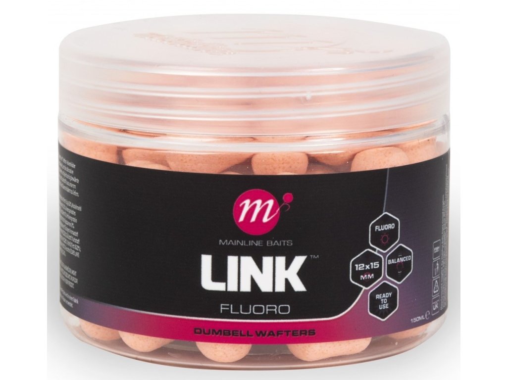 Mainline ISO Fish Fluoro Dumbell Wafters 12x15mm Pink 150ml - Dedicated Fluoro Dumbell Wafters, ako už ich názov napovedá, sú super svetlé nástrahy pod háčik, ktoré boli navrhnuté tak, aby boli "kriticky vyváženú" prezentáciu nástrahy pod háčikom pomocou protiváhy háčika samotného, ktorá sa tak dokonale nadnáša len nad háčikom samotným.