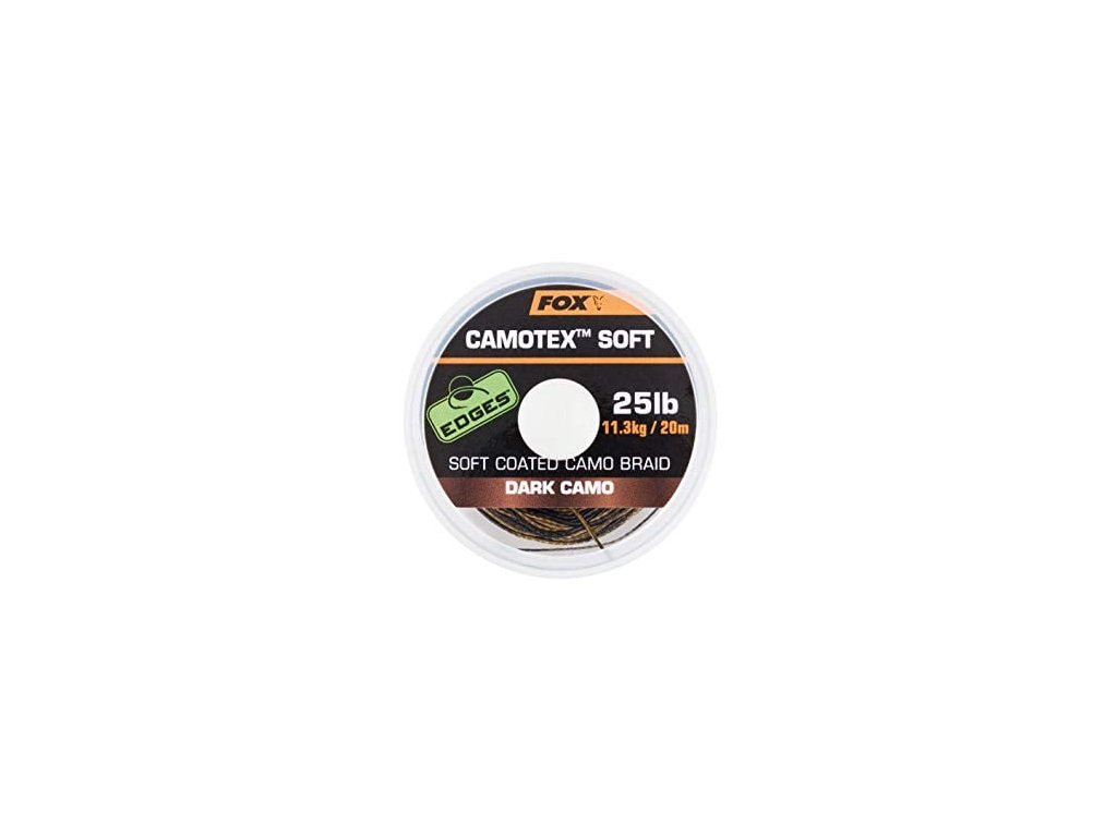 Fox Camotex Soft Coated Camo Braid 20m 25lb Dark Camo - Moderný náväzcový materiál s mäkkou šnúrkou vo vnútri a matným, tuhším sťahovacím povrchom.