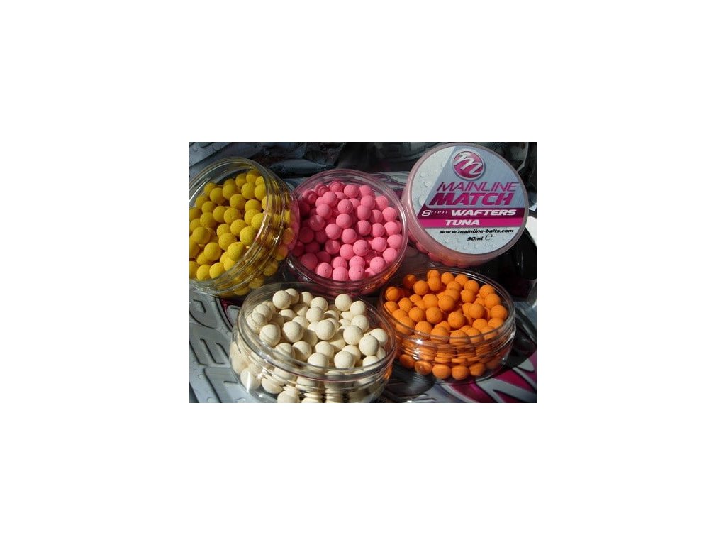 Mainline Wafters 8mm - Pink - Tuna 50ml - Nástraha z novej method-feeder série od anglického výrobcu MAINLINE.Táto nástraha je ideálne aromatizovaná, má gulatý tvar. Ideálne drží na nájnadovej ostni, ktoré sa používajú na method-feedrový lov.