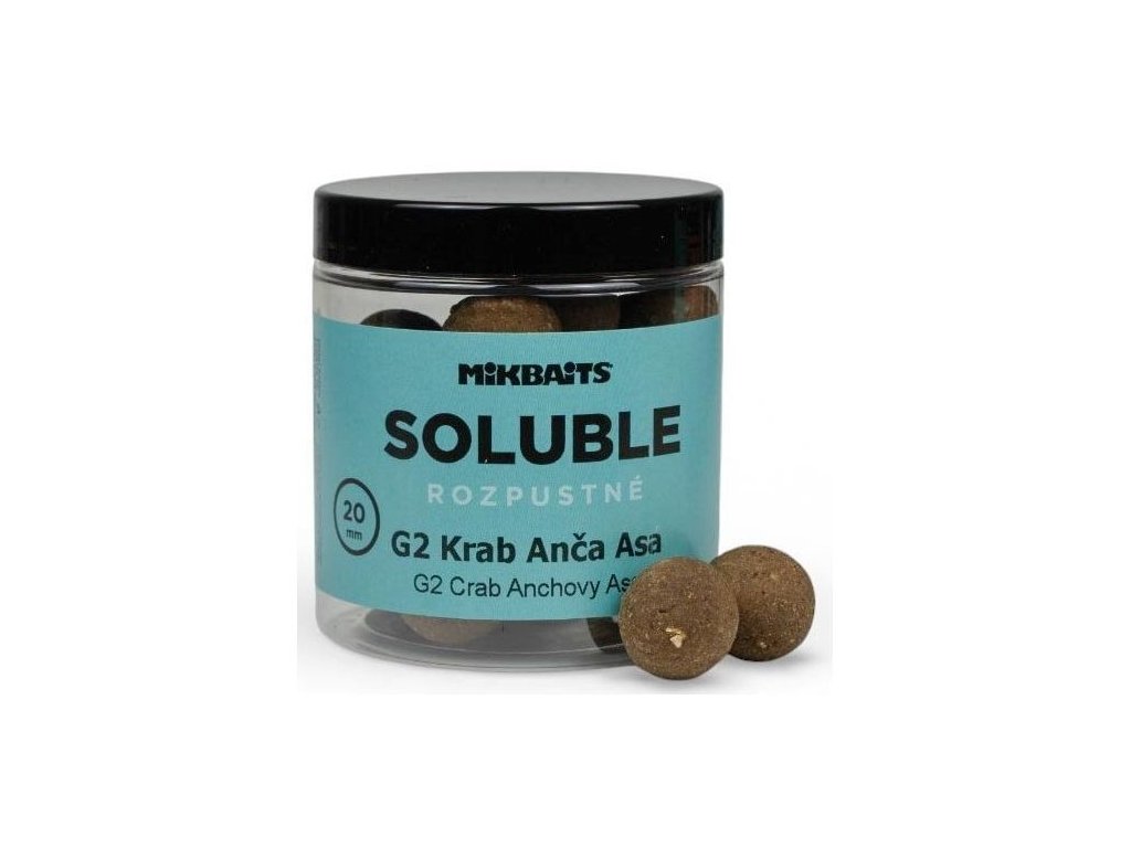 Mikbaits Boilies Soluble rozpustné G2 Krab Ancov. Asa 24mm 250ml - Rozpustné SOLUBLE boilie sa okamžite po vhodení do vody začína rozpúšťať a uvoľňovať lákavé signály.