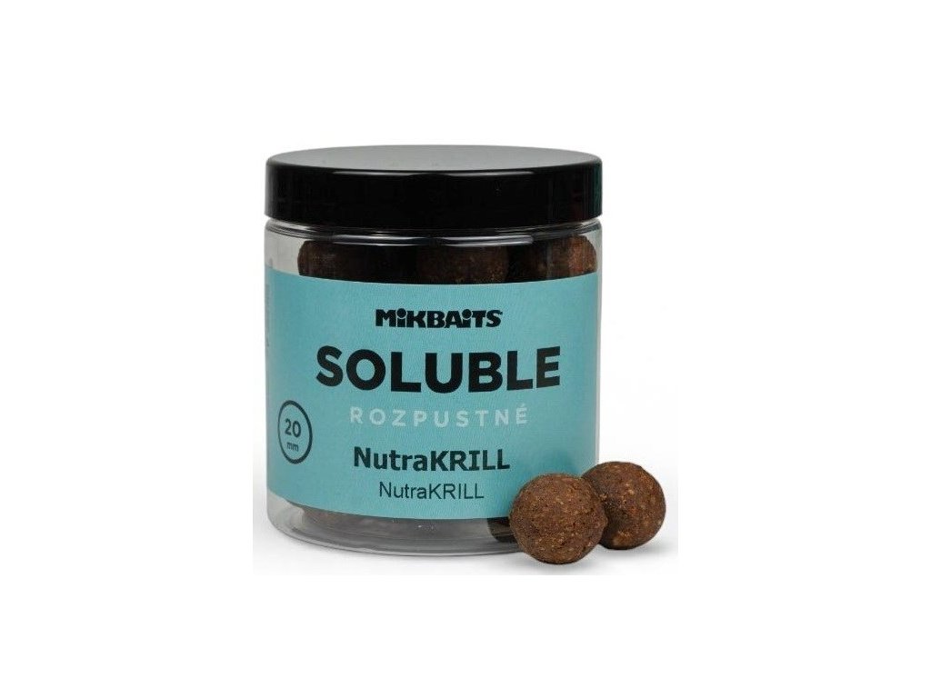 Mikbaits Boilies Soluble rozpustné Nutrakrill 24mm 250ml - Rozpustné SOLUBLE boilie sa okamžite po vhodení do vody začína rozpúšťať a uvoľňovať lákavé signály.